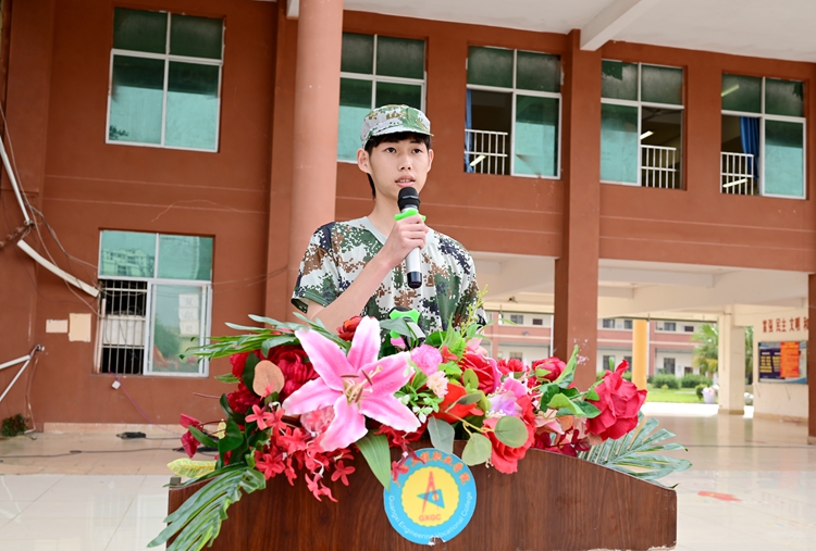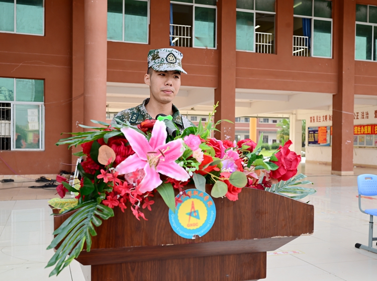 新生代表2022級(jí)藝術(shù)設(shè)計(jì)學(xué)院蔣明翰同學(xué)發(fā)言,表示全體新生要以軍人的身份,刻苦訓(xùn)練,嚴(yán)守紀(jì)律,聽(tīng)從指揮,服從命令,磨煉意志,不怕困難,尊敬老師,尊敬教官,爭(zhēng)做優(yōu)秀學(xué)員。以飽滿(mǎn)的熱情、堅(jiān)強(qiáng)的毅力去迎接軍訓(xùn)中的各種挑戰(zhàn),讓青春在軍訓(xùn)中綻放得更加奪目燦爛!