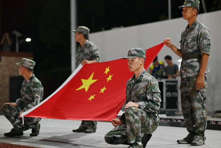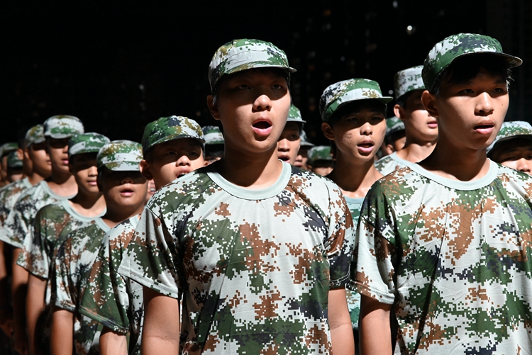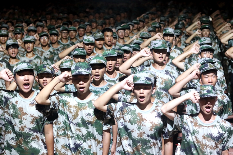 軍訓(xùn)新生面向國(guó)旗,以青春之名莊嚴(yán)宣誓