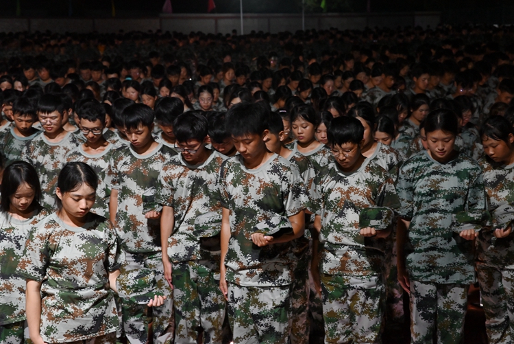 晚上20時(shí),軍訓(xùn)新生集結(jié)學(xué)校田徑運(yùn)動(dòng)場(chǎng),面向鮮艷的五星紅旗莊嚴(yán)宣誓:勿忘國(guó)恥、吾輩自強(qiáng),以史為鑒、珍愛(ài)和平。字字深入人心,感人肺腑。進(jìn)一步激發(fā)了同學(xué)們自覺(jué)踐行社會(huì)主義核心價(jià)值觀,培養(yǎng)高尚品德,樹(shù)立遠(yuǎn)大理想,勤奮學(xué)習(xí),努力成長(zhǎng)為祖國(guó)建設(shè)的有用之材。宣誓完畢,全體師生進(jìn)行了默哀。