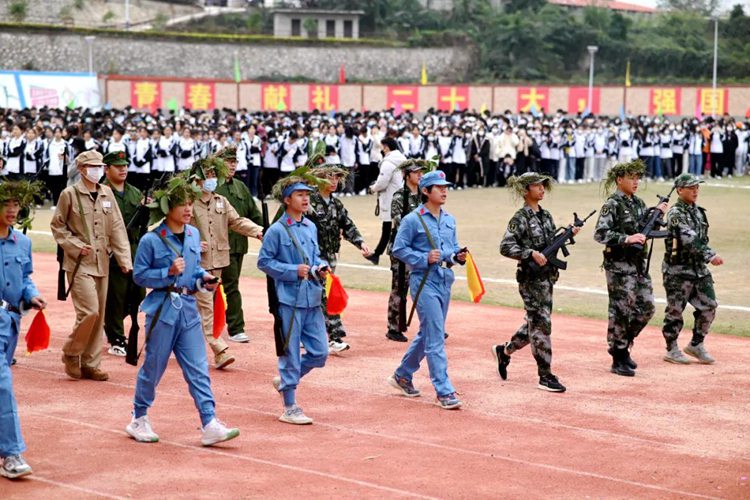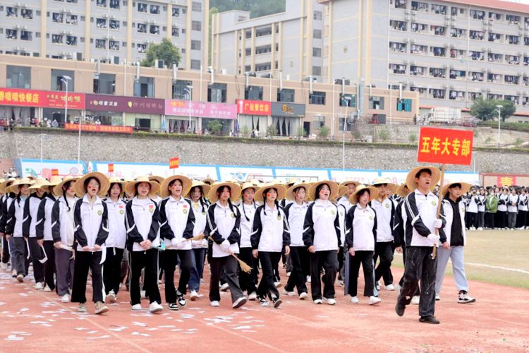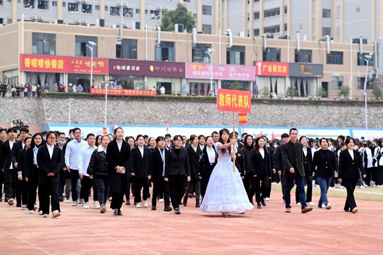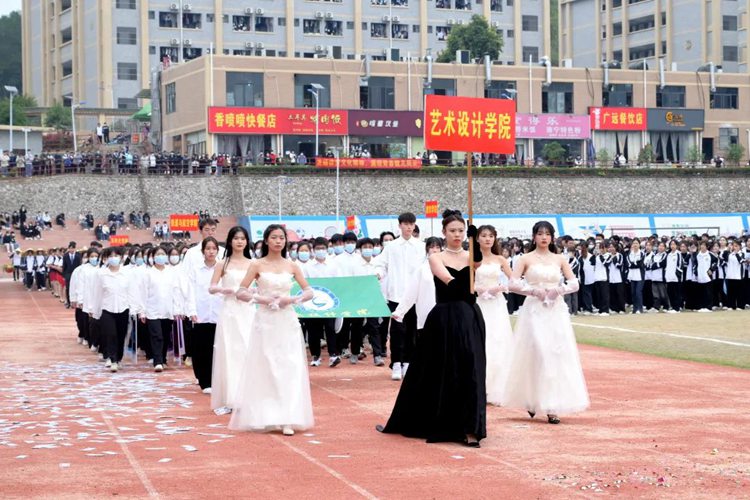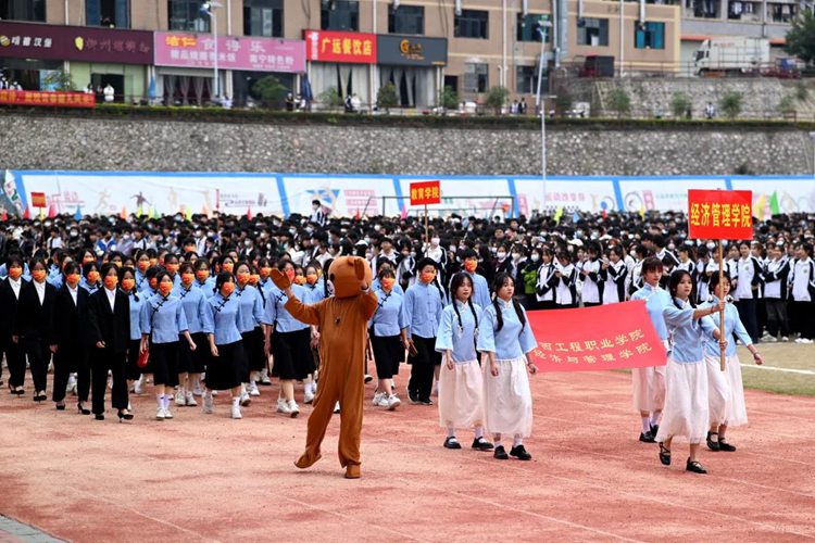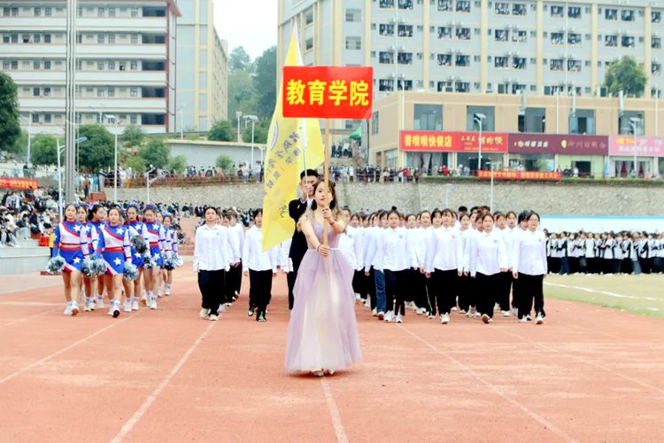 伴隨著熱烈激昂的《運(yùn)動(dòng)員進(jìn)行曲》旋律,國(guó)旗隊(duì)、鮮花隊(duì)、彩旗隊(duì)、裁判員隊(duì)、教師代表隊(duì)、各二級(jí)學(xué)院代表隊(duì)以及五年大專(zhuān)部組成的14個(gè)方隊(duì),以飽滿的精神、整齊的步伐依次通過(guò)主席臺(tái)。