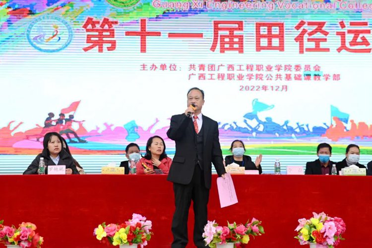 2022年12月9日,廣西工程職業(yè)學(xué)院“青春獻(xiàn)禮二十大 踔厲奮發(fā)向未來(lái)”第十一屆田徑運(yùn)動(dòng)會(huì)在學(xué)校運(yùn)動(dòng)場(chǎng)開(kāi)幕。學(xué)校黨政領(lǐng)導(dǎo)班子、中層干部、部門(mén)負(fù)責(zé)人,全體教師以及來(lái)自7個(gè)二級(jí)學(xué)院的學(xué)生代表出席了開(kāi)幕式。開(kāi)幕式由黨委副書(shū)記黃秋霞主持。