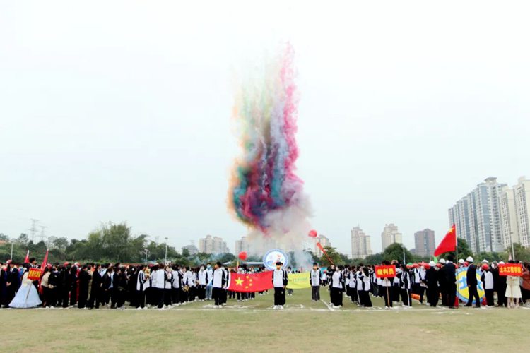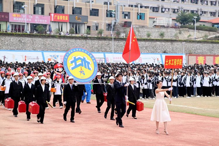 英姿颯爽的國(guó)旗方隊(duì)邁著堅(jiān)定有力的步伐率先入場(chǎng),緊接著,會(huì)徽隊(duì)、鮮花隊(duì)、彩旗隊(duì)、裁判員、教師代表隊(duì)踏著整齊劃一的步伐,向著主席臺(tái)方向迎面走來(lái)。各二級(jí)學(xué)院方陣隊(duì)步伐矯健,依次入場(chǎng),他們根據(jù)學(xué)院的特色打造了別出生面的入場(chǎng)方式。各二級(jí)學(xué)院各具特色的衣著服飾、別具一格的方陣表演展現(xiàn)著各個(gè)學(xué)院的風(fēng)格特點(diǎn),一聲聲響亮的口號(hào)、一列列整齊的隊(duì)伍,無(wú)不彰顯著工程學(xué)子朝氣蓬勃的青春活力和奮發(fā)有為的精神風(fēng)貌,贏得了現(xiàn)場(chǎng)觀眾陣陣掌聲。