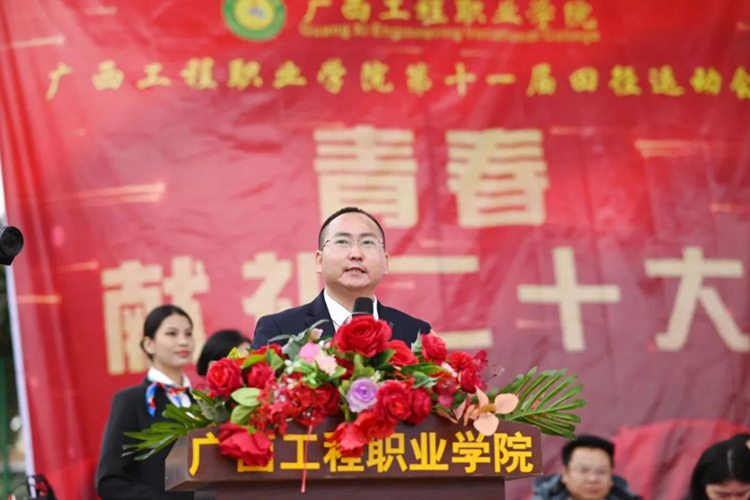 在現(xiàn)場(chǎng)熱烈的氣氛中李益董事長(zhǎng)宣布廣西工程職業(yè)學(xué)院第十一屆田徑運(yùn)動(dòng)會(huì)開(kāi)幕。