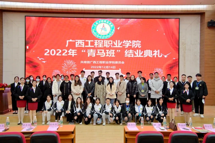 2022年12月14日晚,廣西工程職業(yè)學院在圖文信息大樓一樓學術(shù)報告廳舉行2022年“青馬班”的結(jié)業(yè)典禮。“青馬班”學員們將始終牢記習近平總書記對青年的殷殷囑托,持續(xù)加強習近平新時代中國特色社會主義思想和黨的二十大精神學習,堅定不移聽黨話、跟黨走,做“有理想、敢擔當、能吃苦、肯奮斗”新時代好青年,奮進新征程,詮釋新使命,創(chuàng)造新業(yè)績。