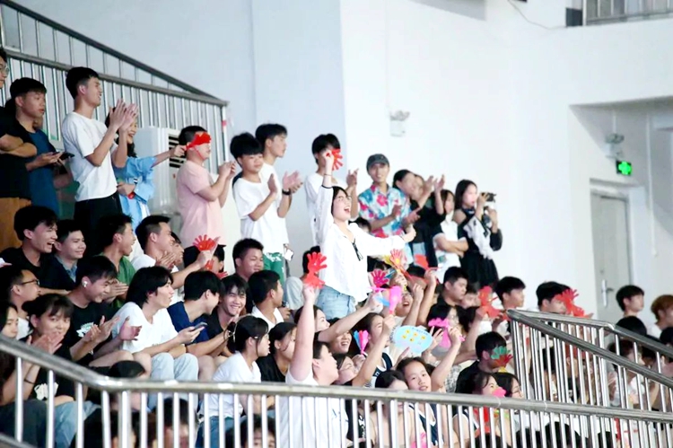 閉幕式進(jìn)行時(shí)。2023年6月9日晚,學(xué)校2023年“揚(yáng)五四精神,展青春風(fēng)采”五四杯籃球賽閉幕式在體育館舉行。