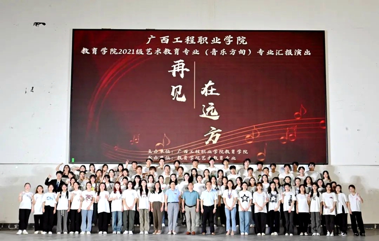 青春盛世,巍巍學(xué)府藏不住奕奕風(fēng)采,奮斗正當時。歲月流逝,飛馳的時光帶不走永恒的夢想,逐夢在路上。時光荏苒,流逝的歲月?lián)]不去執(zhí)著的信念,圓志在指尖腳下。2023年6月12日晚,廣西工程職業(yè)學(xué)院教育學(xué)院在體育館舉行2021級藝術(shù)教育專業(yè)(音樂方向)“再見•在遠方”專業(yè)匯報演出。