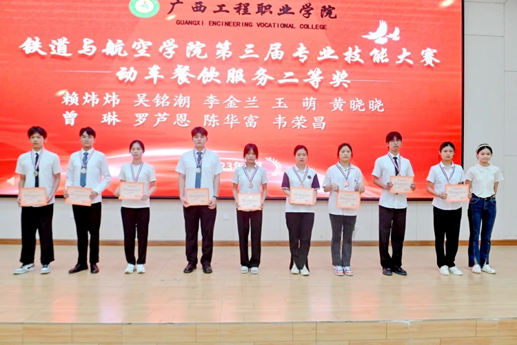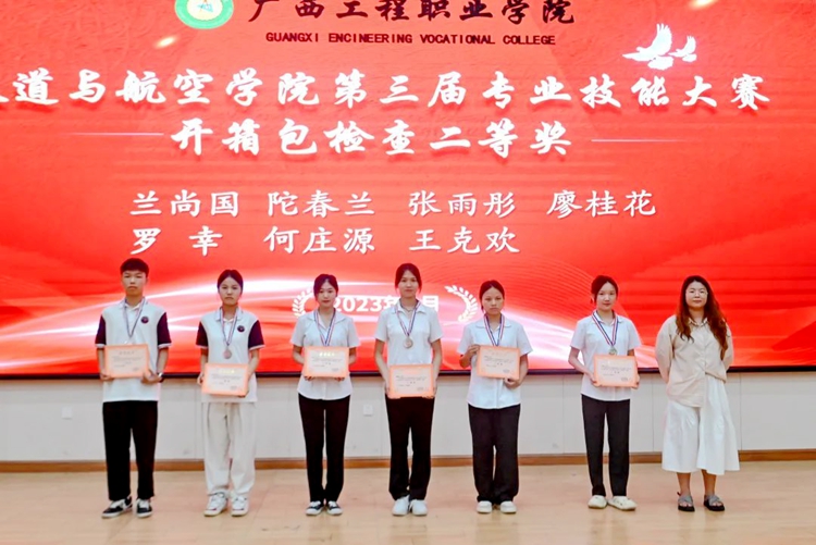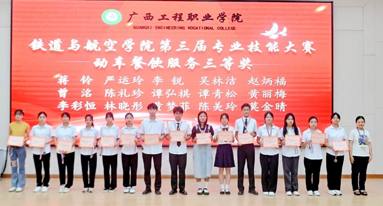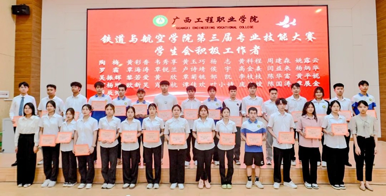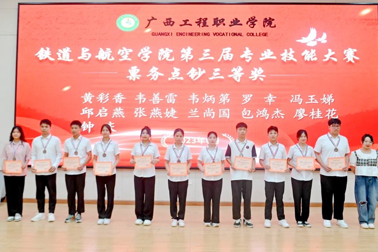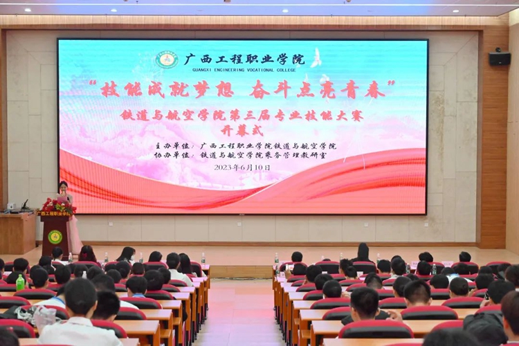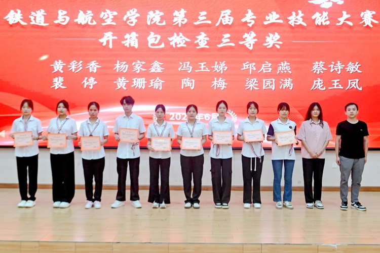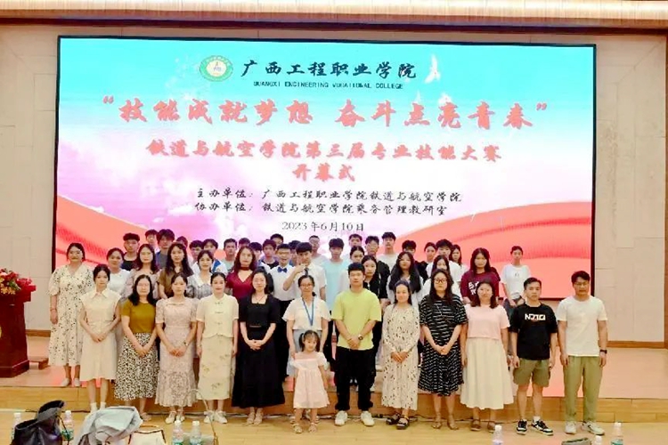 2023年6月19日,鐵道與航空學(xué)院“技能成就夢想 奮斗點亮青春”第三屆專業(yè)技能大賽頒獎儀式在圖文信息大樓一樓報告廳舉行,學(xué)校紀(jì)委書記、副校長彭高彬,鐵道與航空學(xué)院黨支部書記、院長覃鳳姣,鐵道與航空學(xué)院黨支部副書記宋蓉、辦公室主任黃晶晶、學(xué)生科科長謝小玲等領(lǐng)導(dǎo)、老師出席儀式。