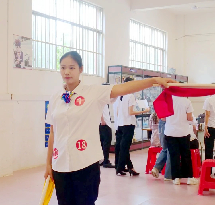 本次技能大賽分別在航空艙、動車艙、建筑工程制圖室、化妝室及形體室等實訓(xùn)場所進(jìn)行。共涵蓋職業(yè)形象(化妝和禮儀)、列車廣播、動車流動餐車服務(wù)、票務(wù)點鈔技能、開箱包檢查、手信號操作、心肺復(fù)蘇及CAD繪圖基礎(chǔ)技能等八項比賽賽項。