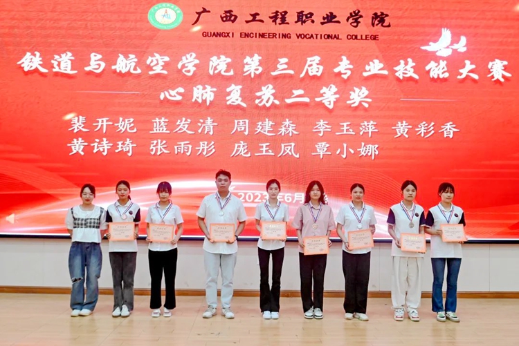 牙慧寧老師為榮獲心肺復(fù)蘇賽項二等獎的學(xué)生頒獎