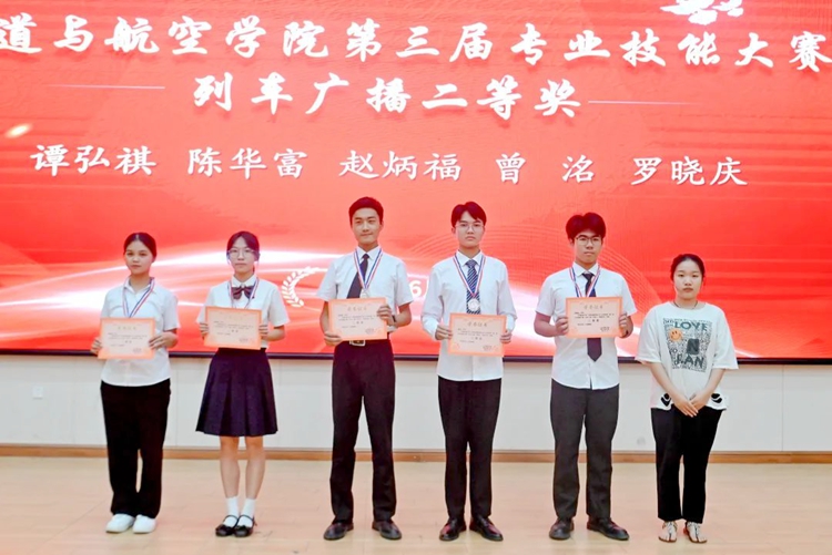 黃韻老師為榮獲列車廣播賽項二等獎的學(xué)生頒獎