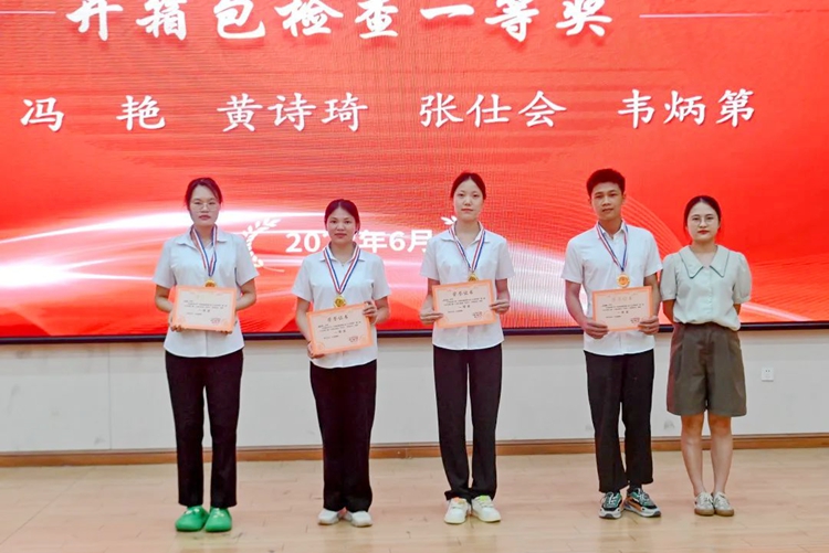 李婷老師為榮獲開箱包檢查賽項一等獎的學(xué)生頒獎