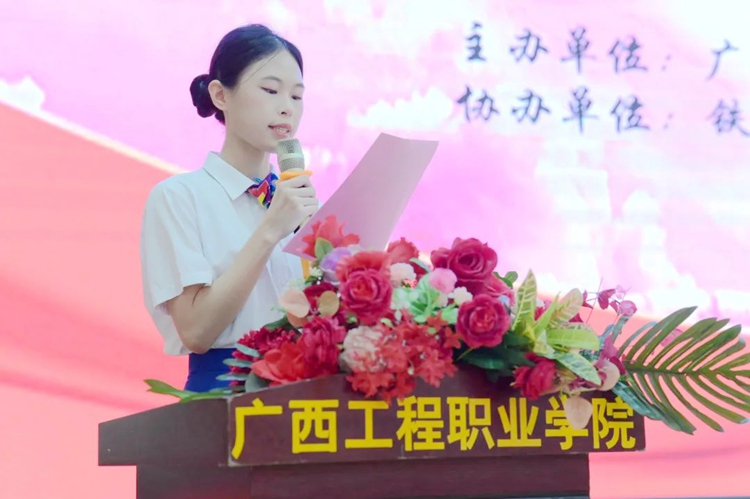 鐵道與航空學(xué)院黨支部書記、院長覃鳳姣,鐵道與航空學(xué)院辦公室主任黃晶晶、學(xué)院輔導(dǎo)員出席開幕式。謝錫潔、顧春盈、凌玲、謝宏玲、盧桂玉、黃典榮、徐琳、李婷、韋丹蕾、農(nóng)璐、馮昌棋、牙慧寧、梁春雨等老師應(yīng)邀擔(dān)任比賽評委。