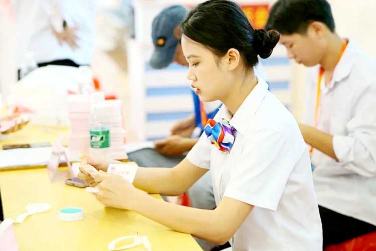 顧春盈老師為榮獲職業(yè)形象賽項二等獎的學(xué)生頒獎