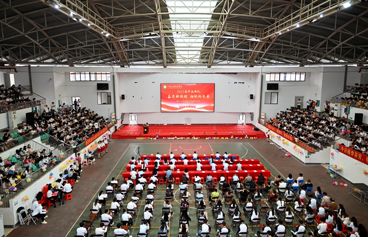 2023年6月26日上午,我校“奮進新征程 揚帆向未來”2023屆畢業(yè)生畢業(yè)典禮在體育館舉行。學校黨政領導班子,各部門負責人,二級學院院長(副院長)、黨支部書記(副書記)、分團委書記、辦公室主任等出席典禮,2020級全體輔導員及2023屆畢業(yè)生參加典禮。學校黨委副書記黃秋霞主持此次典禮。