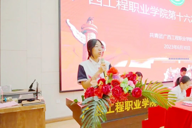 大會(huì)主席團(tuán)執(zhí)行主席黃詩琦作廣西工程職業(yè)學(xué)院第十五屆學(xué)生會(huì)工作報(bào)告