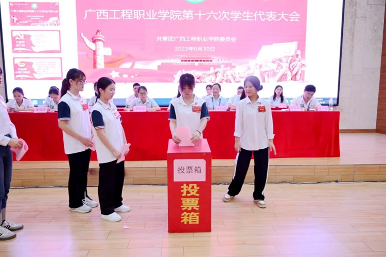 學(xué)生代表們投票選舉第十六屆學(xué)生會(huì)主席團(tuán)成員