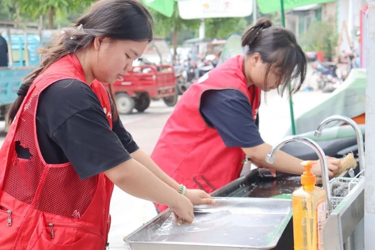 志愿者們參與餐前準(zhǔn)備、餐飲食物分發(fā)等工作,確保老人們能夠準(zhǔn)時(shí)就餐。