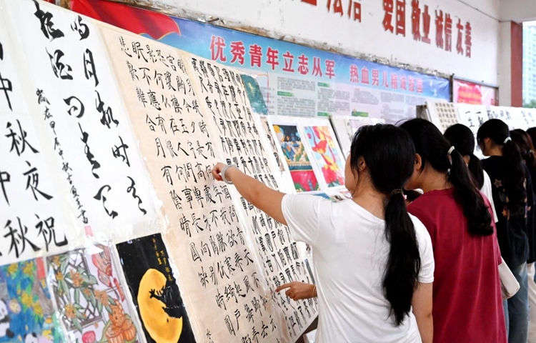 9月5日,學(xué)校團(tuán)委組織開(kāi)展“我們的節(jié)日·中秋”書(shū)畫(huà)展活動(dòng)。活動(dòng)吸引了同學(xué)們的廣泛關(guān)注和參與,同學(xué)們積極深入了解關(guān)于中秋節(jié)傳統(tǒng)習(xí)俗,以手中的筆,描繪了中秋佳節(jié)的美麗畫(huà)卷,寫(xiě)下關(guān)于中秋佳節(jié)的書(shū)法作品,展現(xiàn)中秋節(jié)的傳統(tǒng)文化習(xí)俗,表達(dá)自己對(duì)中秋節(jié)的美好祝愿,展現(xiàn)了中國(guó)傳統(tǒng)節(jié)日的美麗和中國(guó)文化傳承與發(fā)展的獨(dú)特魅力。