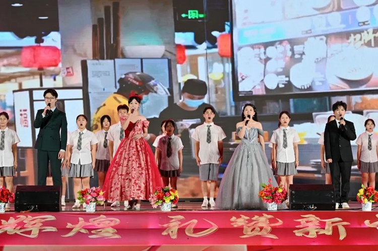 今夜,燈光璀璨如星,夢想的火焰被悄然點燃。師生們歡聚一堂,共同慶祝國慶。