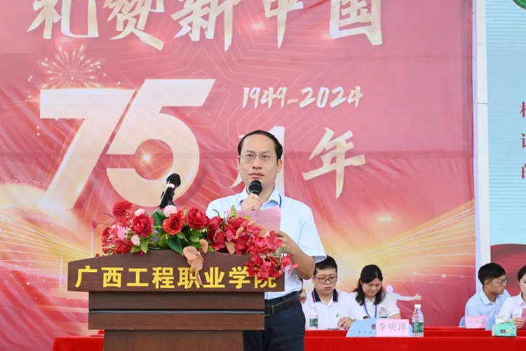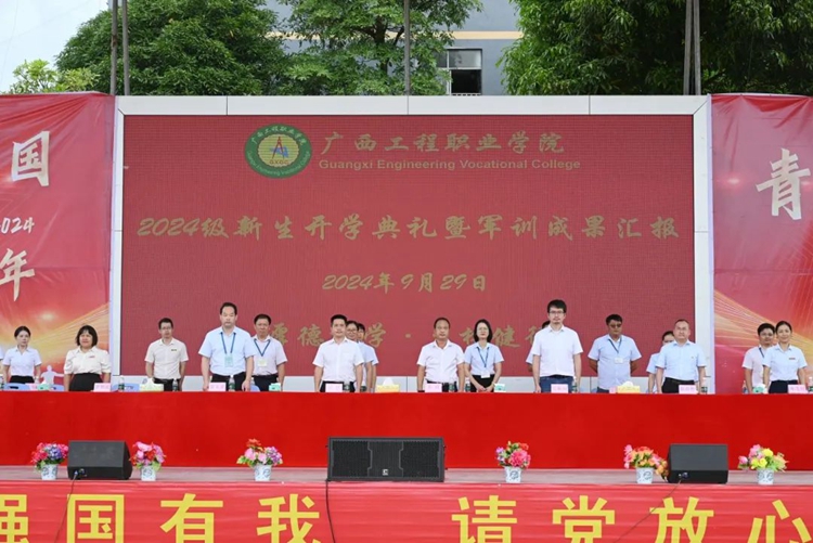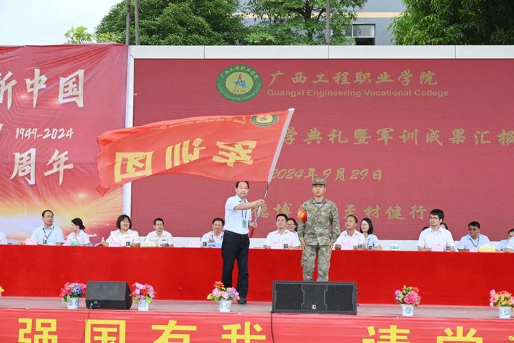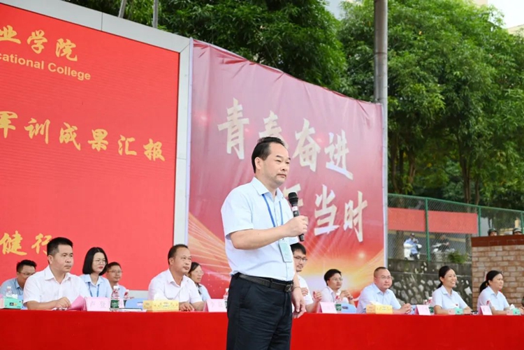 平果市人民政府副市長(zhǎng)盧登講話,他肯定了學(xué)校的辦學(xué)成就和為地方經(jīng)濟(jì)社會(huì)發(fā)展做出的突出貢獻(xiàn),希望2024級(jí)新生要把軍訓(xùn)中養(yǎng)成的良好的行為習(xí)慣和精氣神延續(xù)到即將開啟的大學(xué)生活中去,珍惜大學(xué)時(shí)光,堅(jiān)定理想信念,立大志、明大德、學(xué)本領(lǐng)、強(qiáng)體魄,與新時(shí)代同向同行,敢為天下先、勇?lián)煜氯危ψ鲎咴跁r(shí)代前列的奮進(jìn)者、開拓者、奉獻(xiàn)者,努力成長(zhǎng)為德智體美勞全面發(fā)展的社會(huì)主義建設(shè)者和接班人,為實(shí)現(xiàn)中華民族偉大復(fù)興的中國(guó)夢(mèng)貢獻(xiàn)青春力量和智慧。