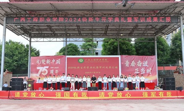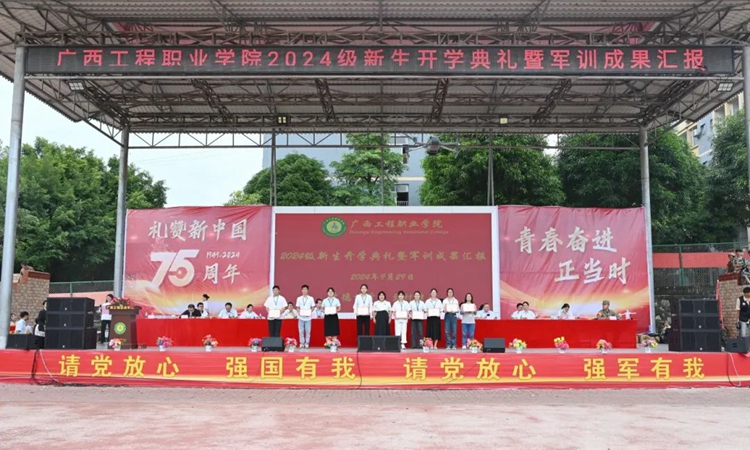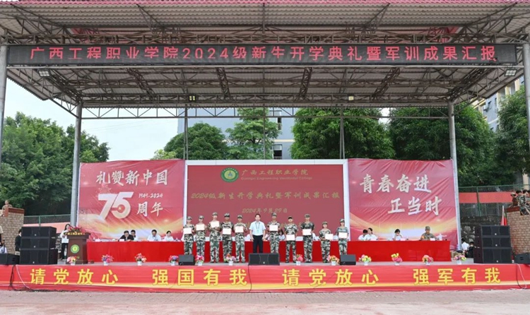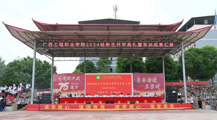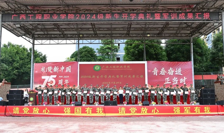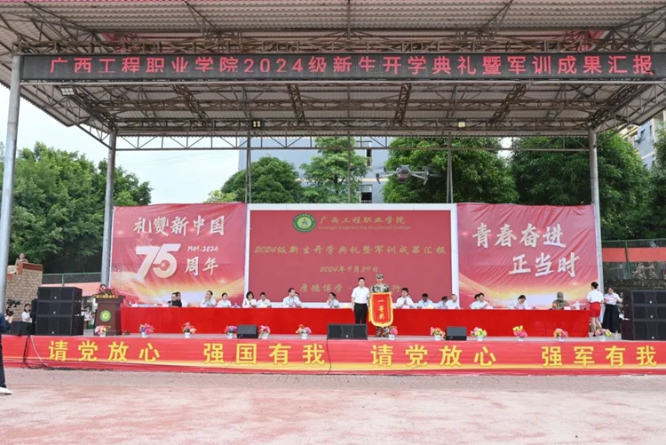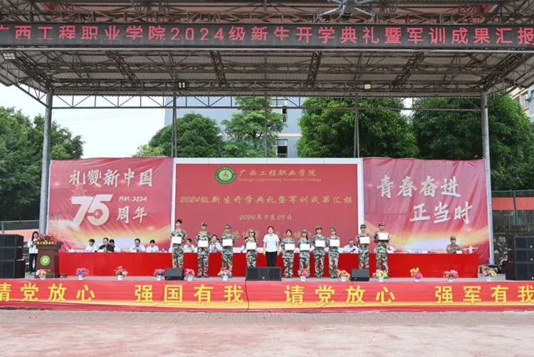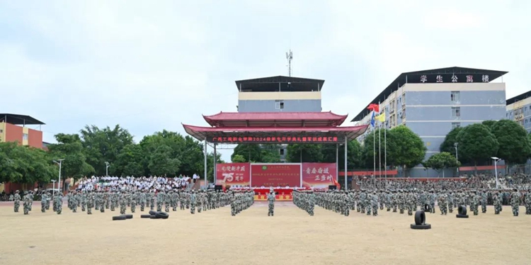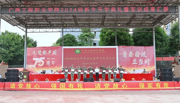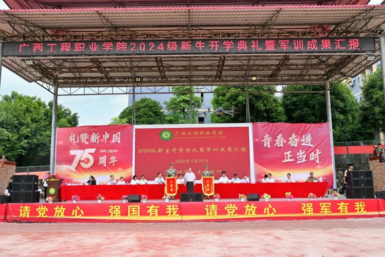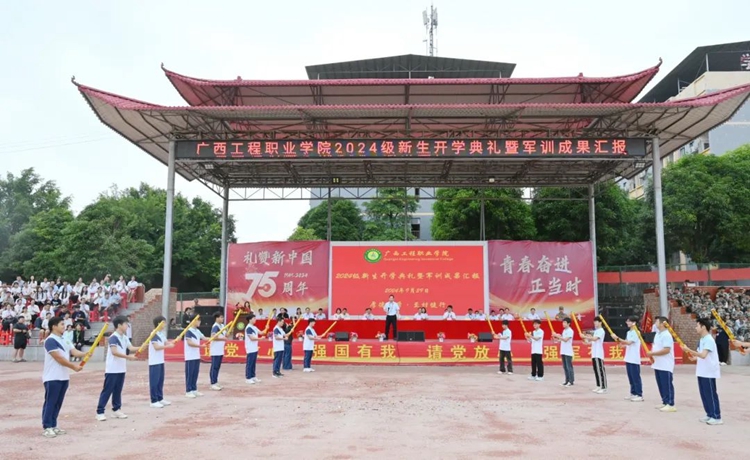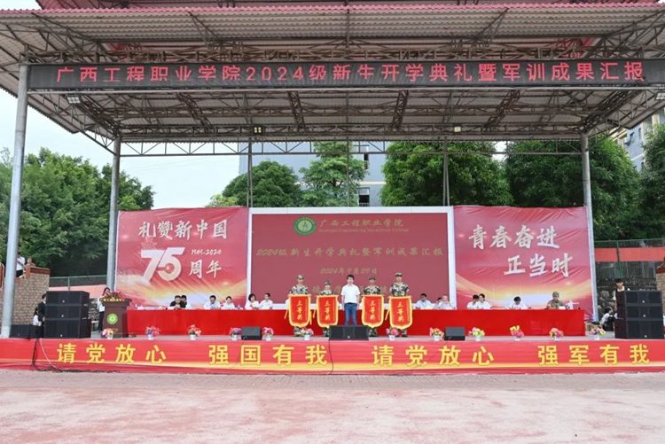 我校舉行2024級(jí)新生開學(xué)典禮暨軍訓(xùn)成果匯報(bào)在中華人民共和國(guó)迎來75華誕之際,9月29日上午,學(xué)校舉行2024級(jí)新生開學(xué)典禮暨軍訓(xùn)成果匯報(bào),新生們整裝集結(jié)在田徑場(chǎng),用嘹亮的口號(hào)致敬青春,用精彩的匯演獻(xiàn)禮祖國(guó)。