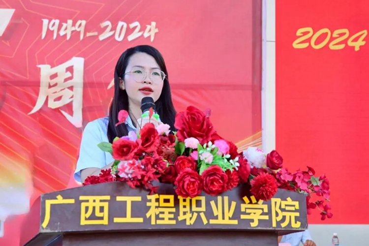 黨委副書記、校長(zhǎng)羅艷妮致辭。她代表全體教職工向蒞臨本次開學(xué)典禮暨軍訓(xùn)成果匯報(bào)現(xiàn)場(chǎng)的領(lǐng)導(dǎo)、嘉賓表示熱烈的歡迎和衷心的感謝!向最年輕的“工程人”表示歡迎和祝賀。