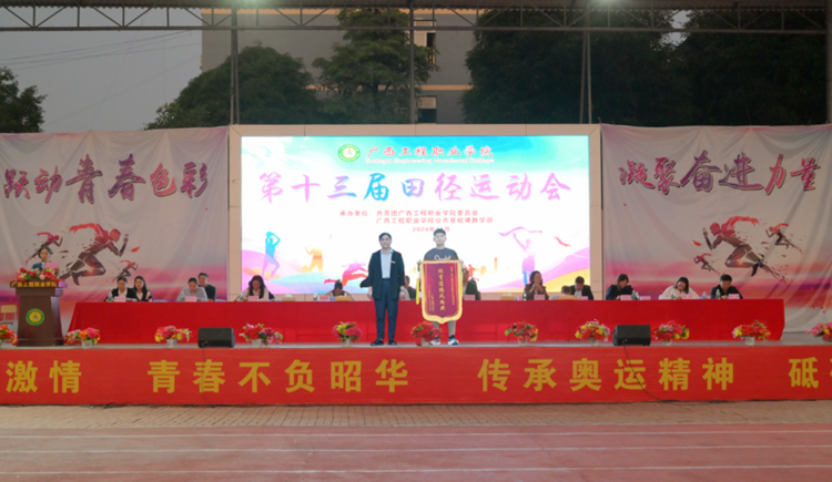 黨委副書記、校長羅艷妮致閉幕詞,并宣布廣西工程職業(yè)學院2024年第十三屆田徑運動會圓滿閉幕。