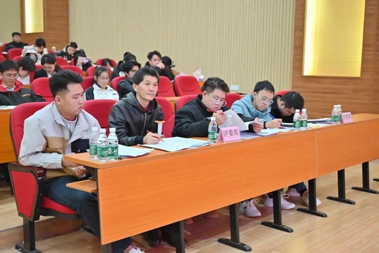 評委席:大學(xué)園區(qū)管理服務(wù)中心指導(dǎo)專家梁宏、廣西初晨廣告有限公司經(jīng)理呂澤濱、藝術(shù)設(shè)計學(xué)院黨支部副書記趙志輝、鐵道與航空學(xué)院助理工程師蘇世淋、汽車與機電學(xué)院助理工程師成天祺。