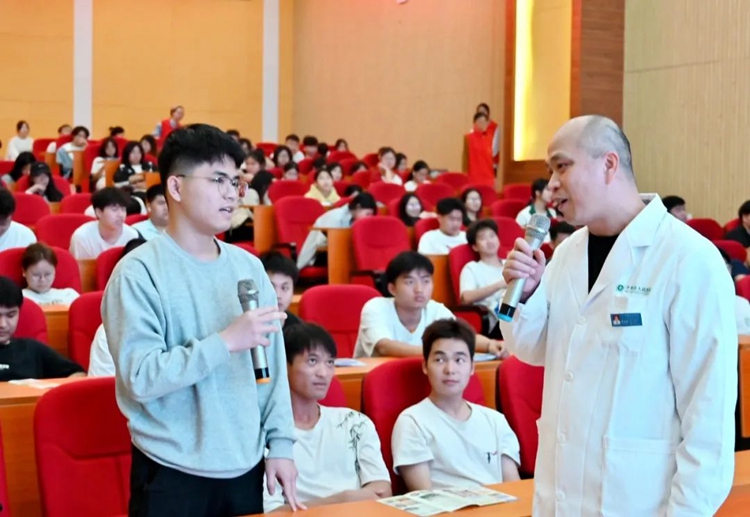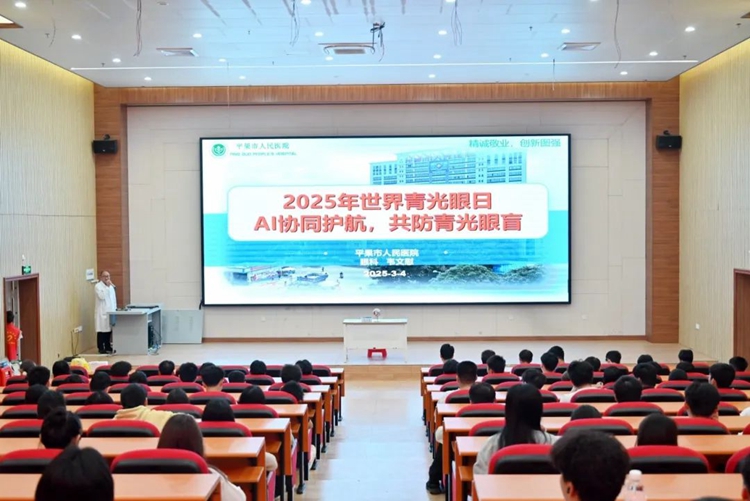 眼科副主任韋文慰為學(xué)子們帶來題為《AI協(xié)同護(hù)航,共防青光眼盲》的知識講座。講座圍繞青光眼的定義、危害、科學(xué)預(yù)防三大板塊,深入淺出地講解了青光眼這個“視力小偷”對視力健康的威脅,并重點科普如何治療、預(yù)防青光眼的實用技巧。