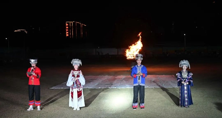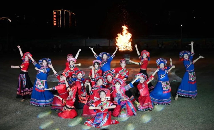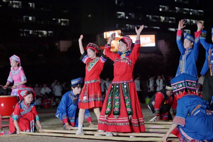 本次篝火晚會(huì)精心編排多個(gè)精彩節(jié)目,涵蓋山歌串燒、民族舞蹈、非遺表演等多種形式。從 “山歌繞梁·余韻未歇” 的悠揚(yáng)歌聲,到 “三月春風(fēng)拂人間·民族文化永傳承” 的多彩演繹,再到 “火焰不息·狂歡不止” 的熱烈氛圍,將全方位呈現(xiàn)民族文化魅力,為師生們帶來一場令人驚艷的視聽盛宴。