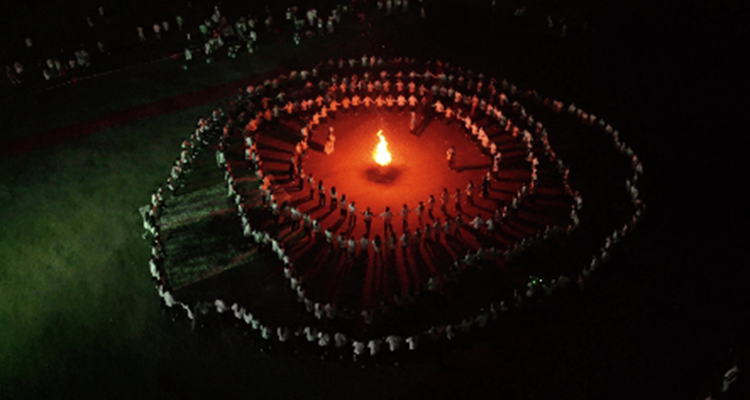教育學(xué)院和藝術(shù)設(shè)計(jì)學(xué)院的同學(xué)們手拉手圍繞篝火盡情歡跳,熊熊燃燒的篝火象征著熱情與活力,大家在火光中釋放自我,共同沉浸在這歡樂的海洋,將晚會(huì)的氣氛推向了最高潮。