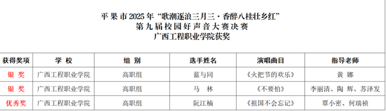 喜報 | 廣西工程職業(yè)學院學子榮獲平果市第九屆校園好聲音大賽兩銀一優(yōu)秀獎
