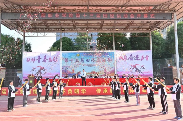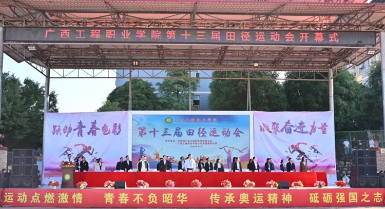 2024年11月22日,廣西工程職業(yè)學(xué)院“躍動青春色彩,凝聚奮進(jìn)力量”第十三屆田徑運(yùn)動會在學(xué)校運(yùn)動場開幕。學(xué)校黨政領(lǐng)導(dǎo)班子、中層干部、部門負(fù)責(zé)人出席開幕式,全體教師以及來自各個二級學(xué)院的學(xué)生代表參加開幕式。開幕式由紀(jì)委書記、副校長彭高彬主持。