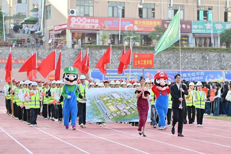 隨后,各二級學(xué)院運(yùn)動員代表隊依次入場,他們造型新奇,特色鮮明,展現(xiàn)廣工程院學(xué)子的創(chuàng)新與活力。