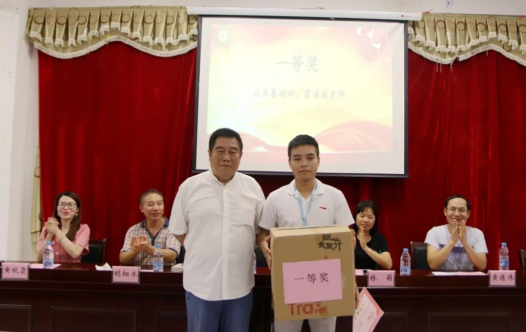 獲獎教師代表蒙海銘老師發(fā)言,他感謝學校提供了這樣一個活動平臺,促進和推動了自己的專業(yè)成長;今后他將再接再厲,多與老教師、優(yōu)秀教師交流學習,不斷提高自己的教學能力和水平,為學校的申本工作添磚加瓦,為學校的人才培養(yǎng)質量上新臺階奉獻力量。