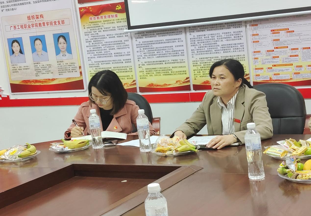 本次座談會參會成員有:學校校長助理粱善雅、梁鳳琴院長、黨支部副書記盧燕梅、組織委員葉健芳等6名教師黨員及20名入黨積極分子。會議由副書記盧燕梅同志主持。
