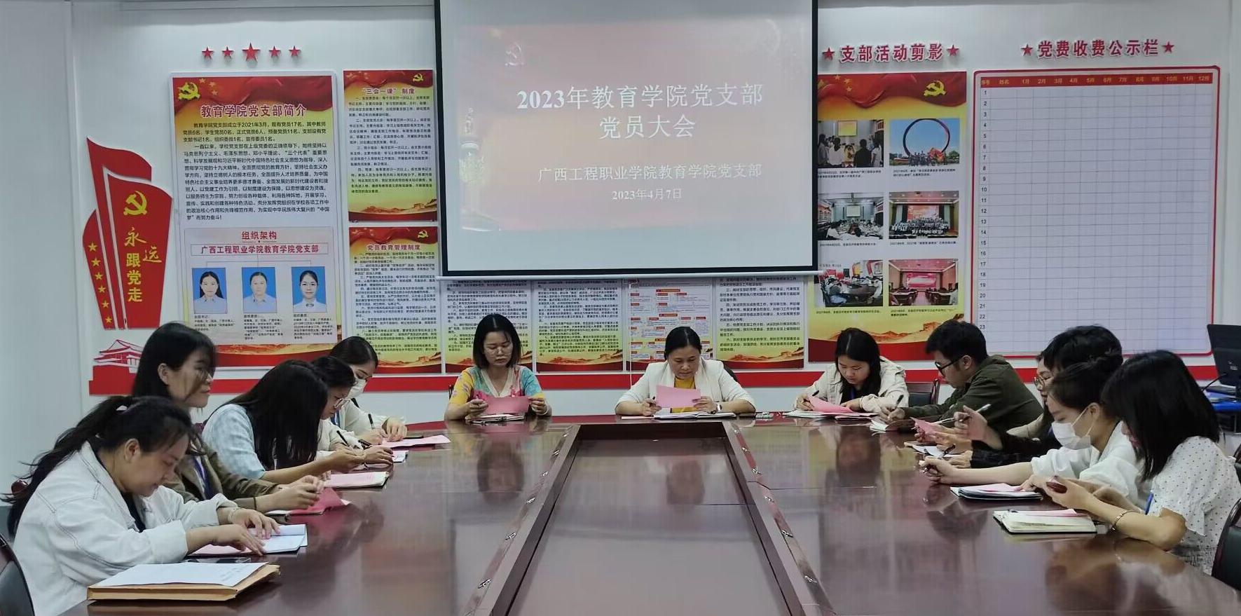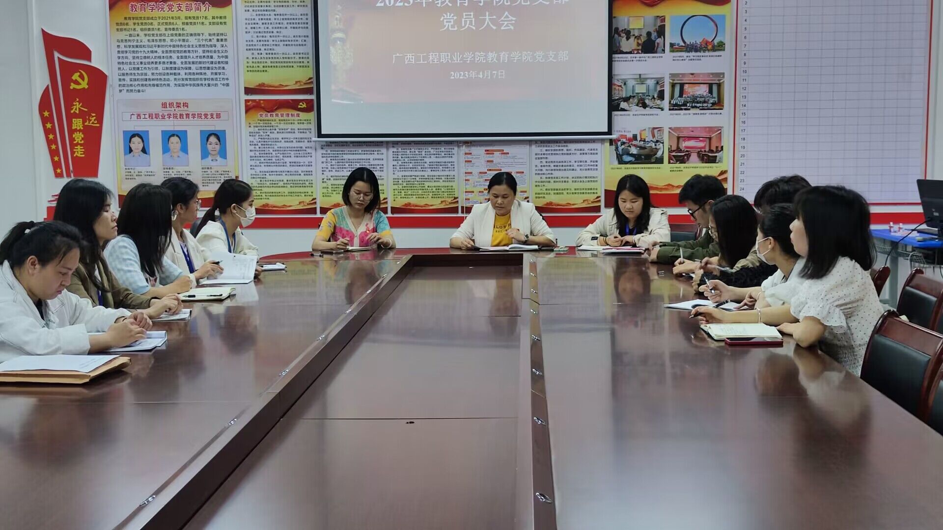 2023年4月7日下午,中共廣西工程職業(yè)學(xué)院教育學(xué)院支部黨員大會(huì)暨補(bǔ)選教育學(xué)院黨支部委員會(huì)成員會(huì)議在教育學(xué)院黨員活動(dòng)室召開,學(xué)校校長(zhǎng)助理、教育學(xué)院黨支部書記梁善雅、教育學(xué)院院長(zhǎng)梁鳳琴、教育學(xué)院黨支部副書記盧燕梅、組織委員葉健芳等12名教師黨員及28名學(xué)生黨員參加會(huì)議。會(huì)議由校長(zhǎng)助理、教育學(xué)院黨支部書記梁善雅同志主持。