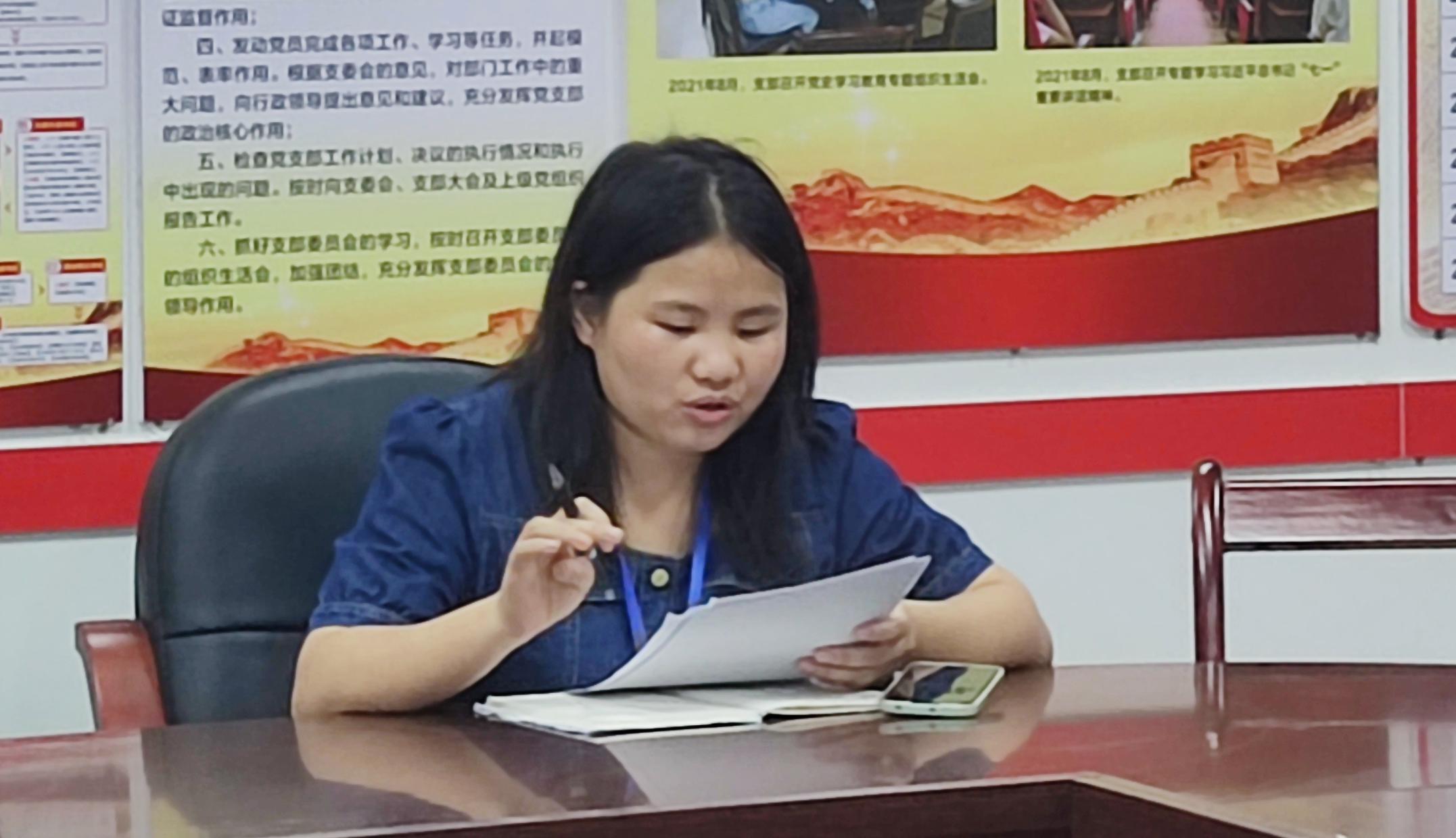 (教育學院黨支部組織委員兼紀檢委員葉健芳講話)
