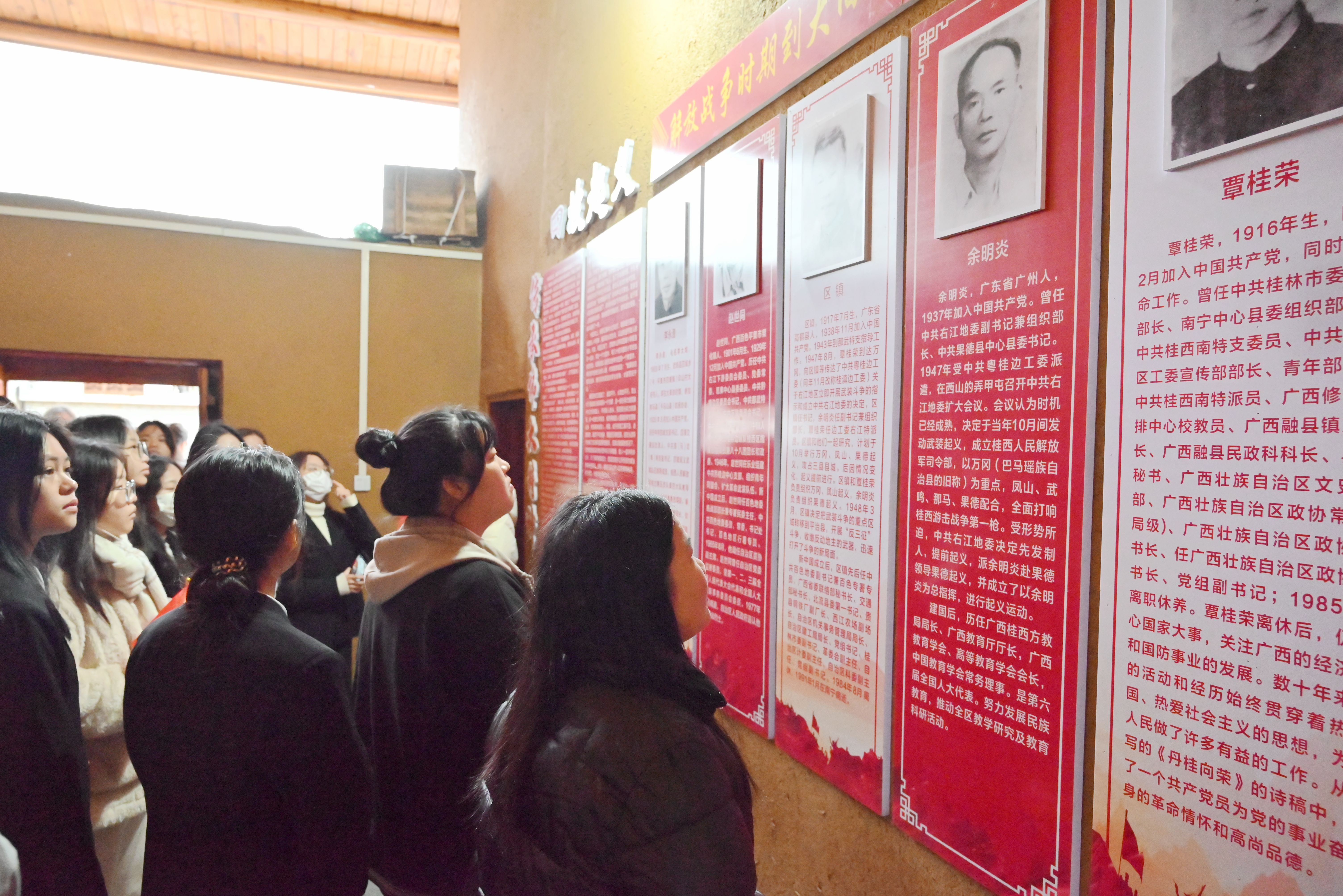 為教育師生黨員更好學(xué)習(xí)和銘記中國(guó)共產(chǎn)黨光輝的歷史,不斷傳承紅色基因,弘揚(yáng)革命精神,汲取奮進(jìn)力量。2023年12月16日,廣西工程職業(yè)學(xué)院教育學(xué)院黨支部,組織師生黨員到平果市四塘鎮(zhèn)地下交通站舊址和四塘鎮(zhèn)印山村祿卜屯等地,開展“追憶紅色歷史 傳承革命精神”主題黨日活動(dòng)。