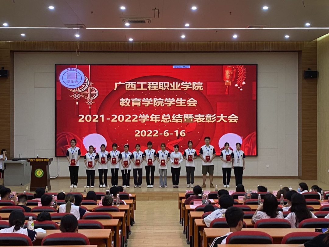 教育學(xué)院第二屆學(xué)生會工作即將收官,新的血液即將注入學(xué)生會。為總結(jié)過去的經(jīng)驗,展望未來的發(fā)展,廣西工程職業(yè)學(xué)院教育學(xué)院學(xué)生會于2022年6月16日晚上19.30在圖文信息大樓三樓舉行教育學(xué)院學(xué)生會2021-2022學(xué)年總結(jié)暨表彰大會。