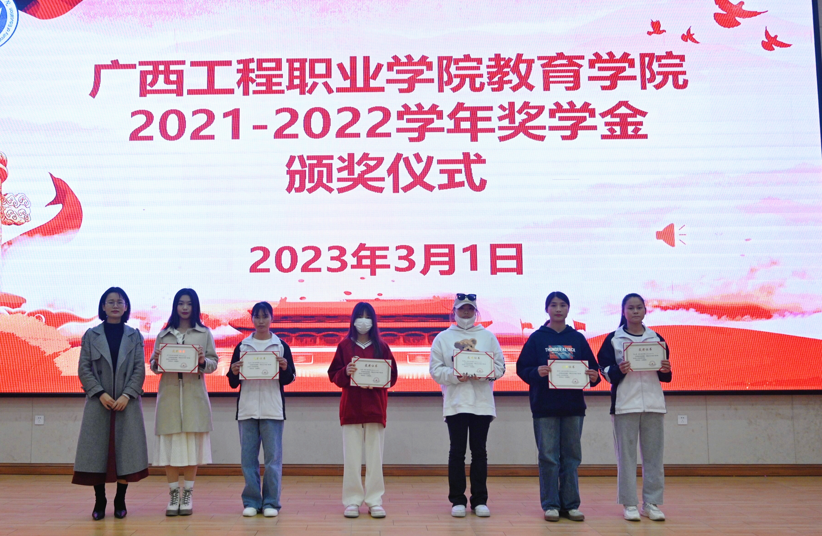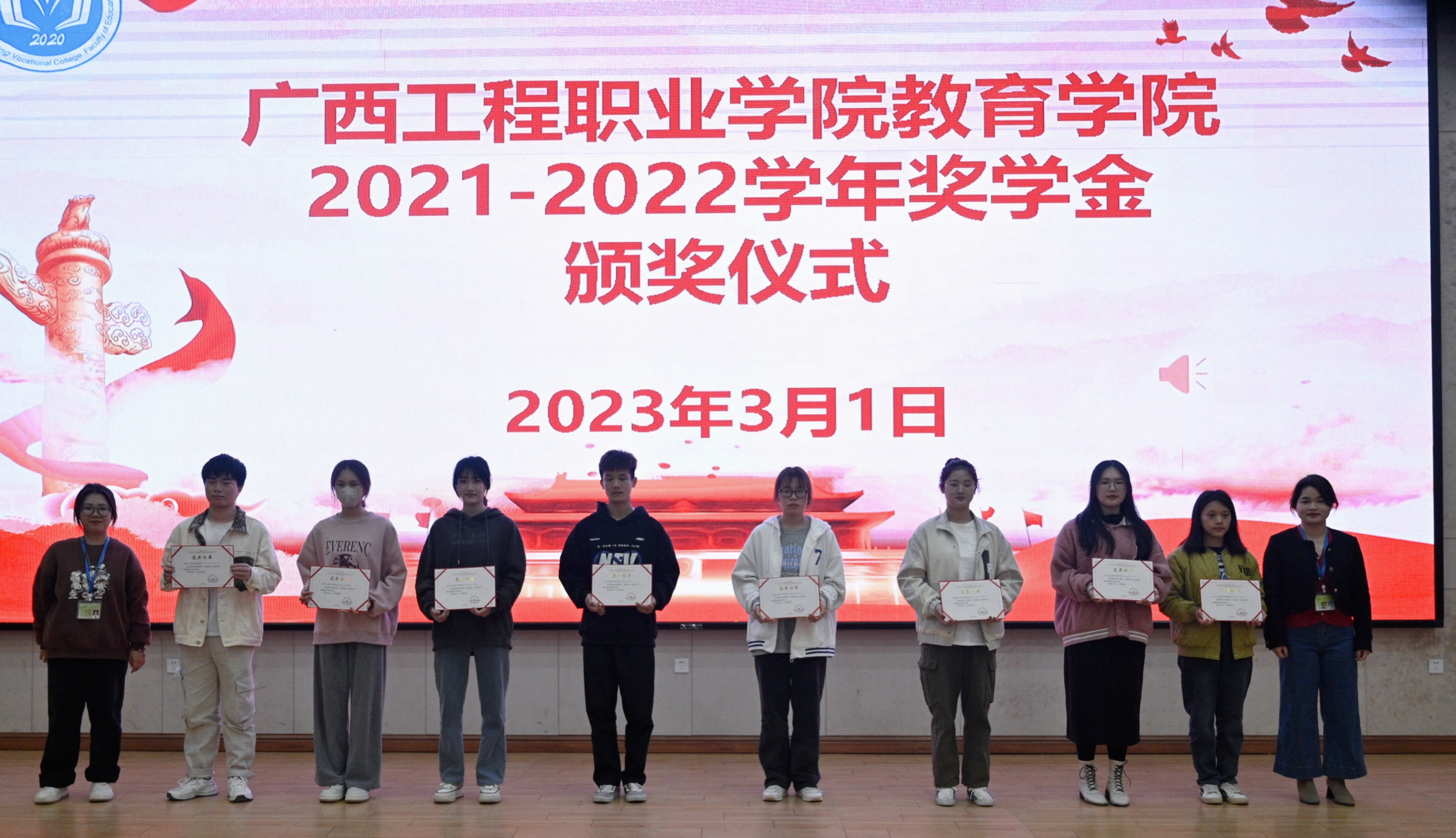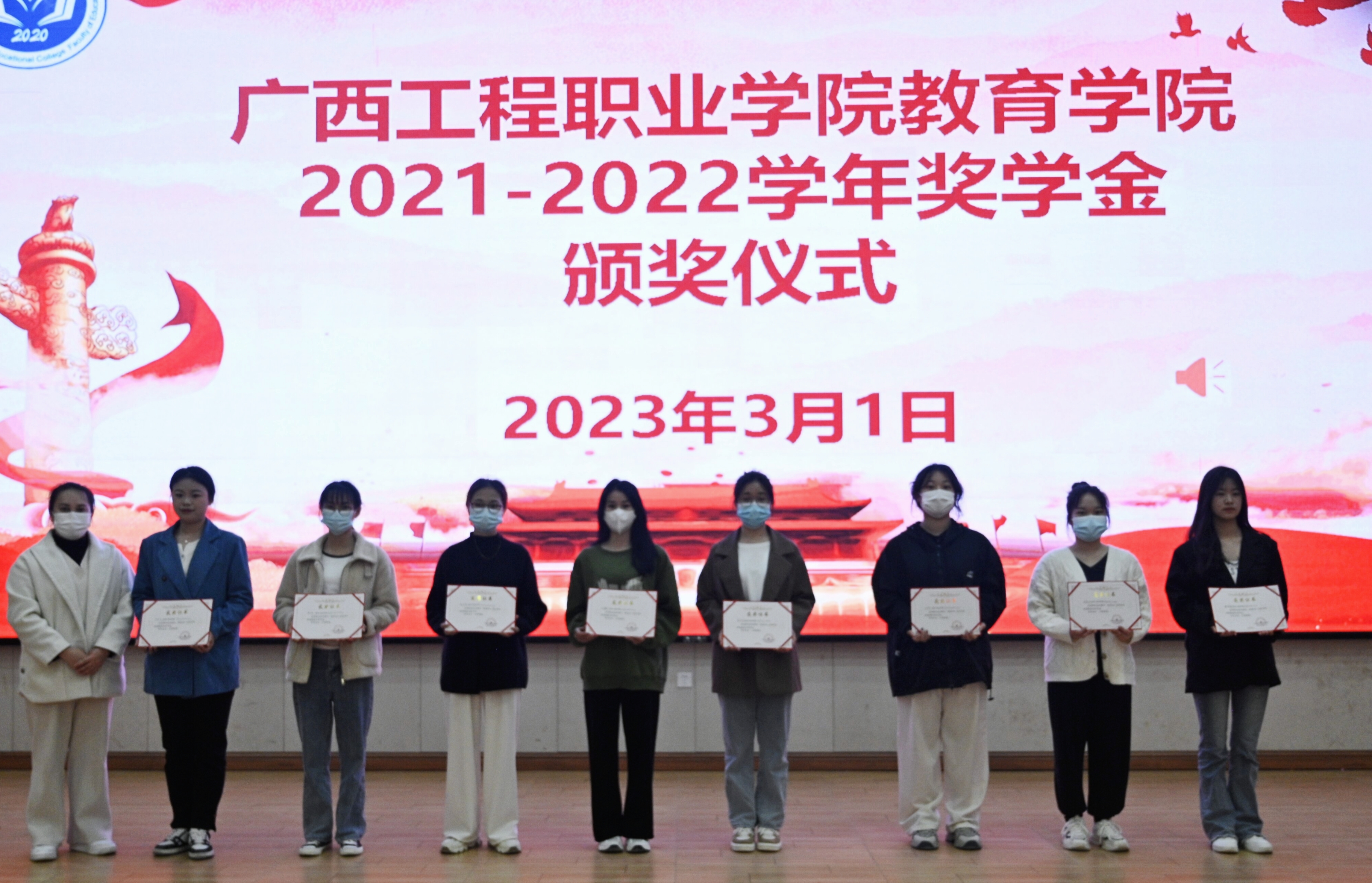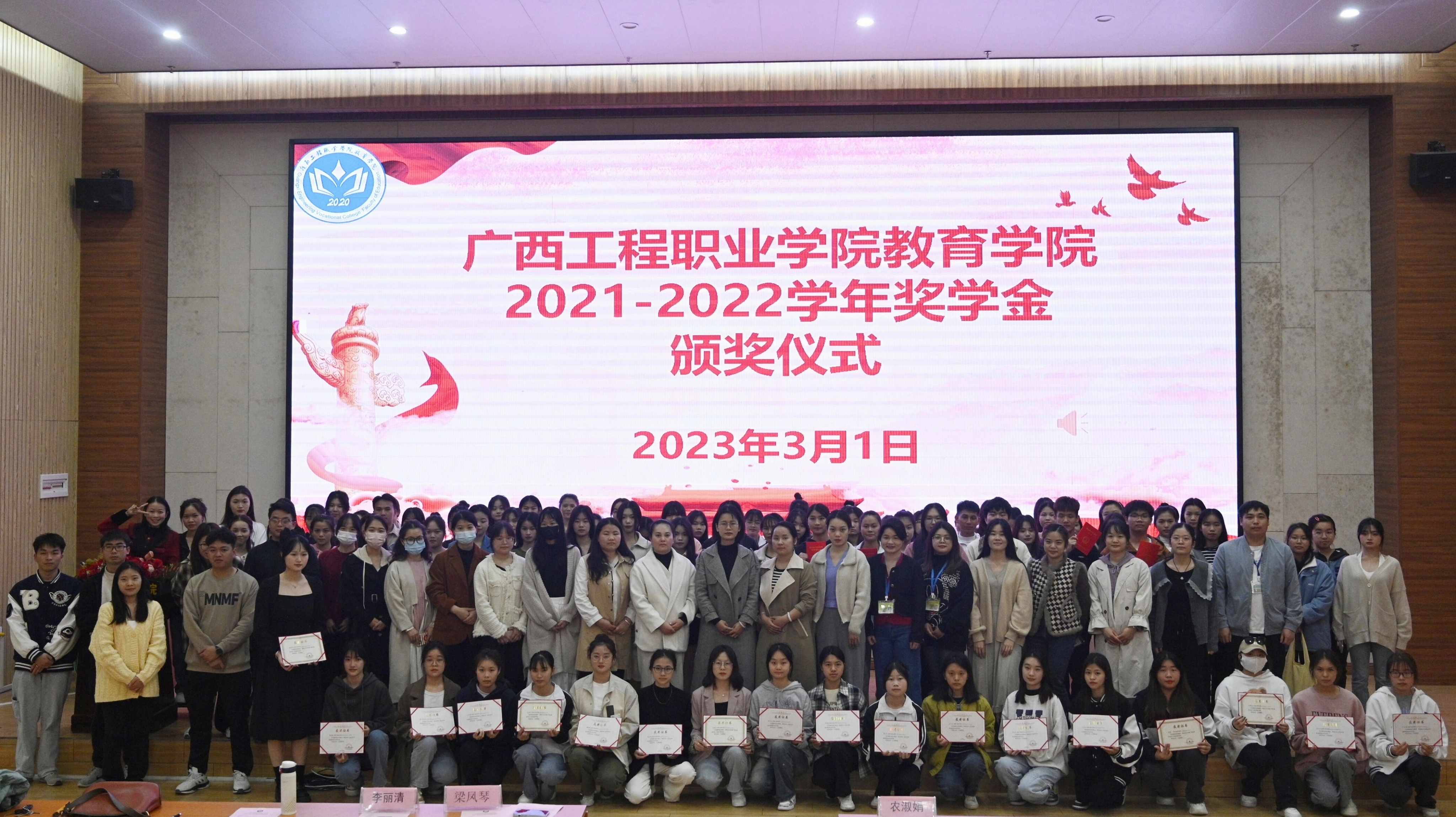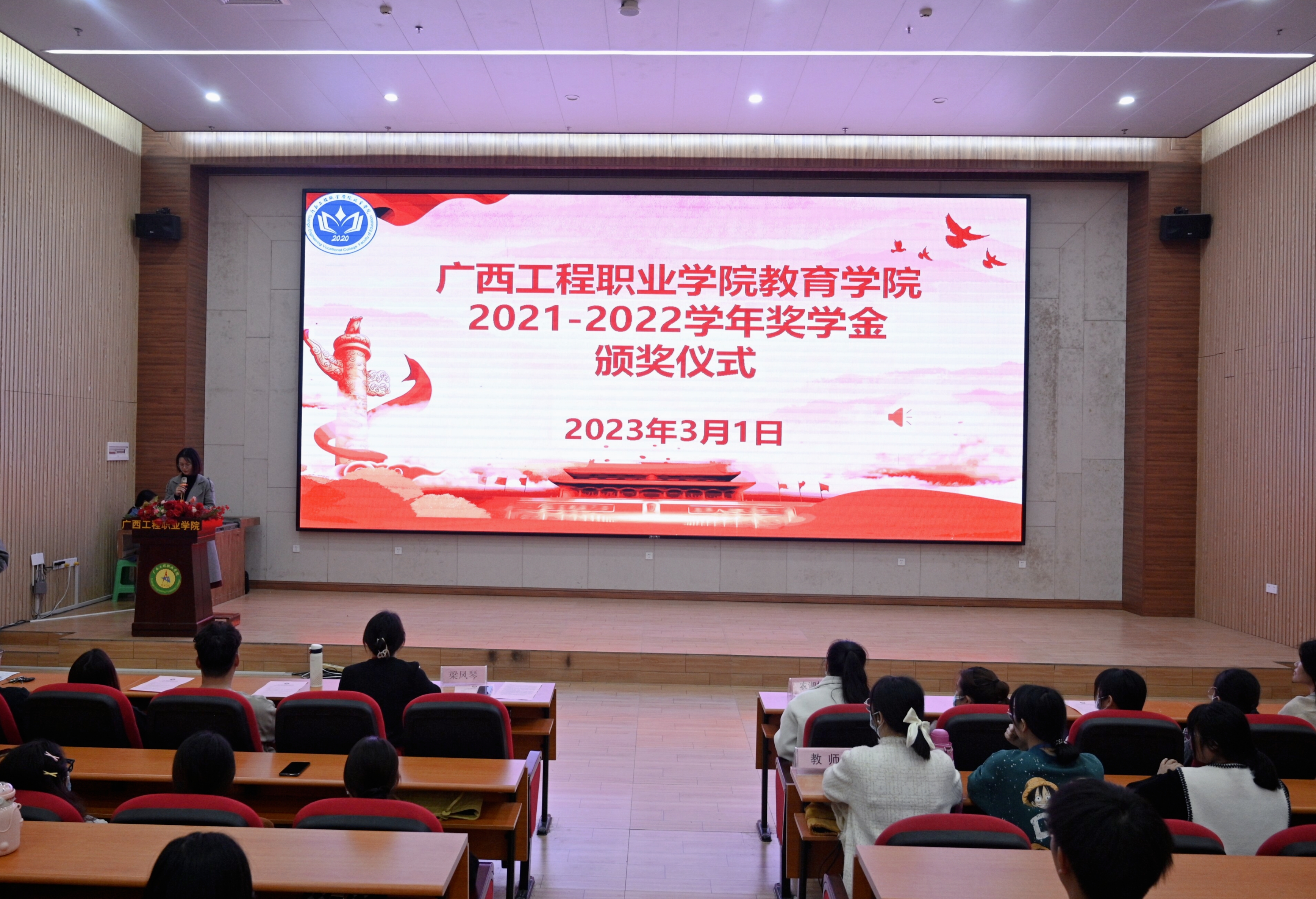 歲月荏苒,匆匆而逝。在校園那美麗的花朵即將綻放的日子,我們又相聚在一起。2023年3月1日晚,廣西工程職業(yè)學(xué)院教育學(xué)院在圖文信息一樓學(xué)術(shù)報告廳舉行了“2021-2022學(xué)年度獎學(xué)金頒獎儀式”。