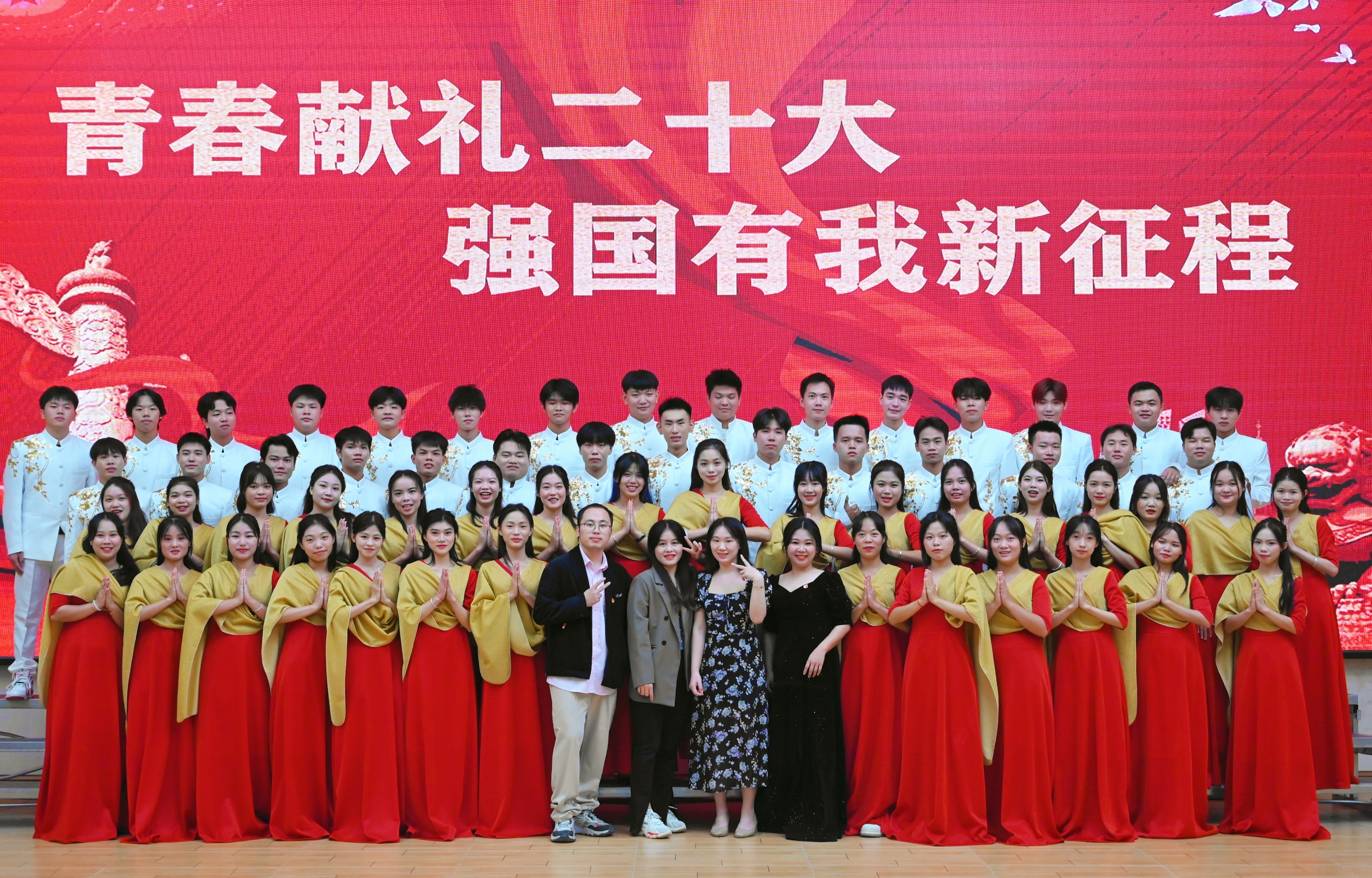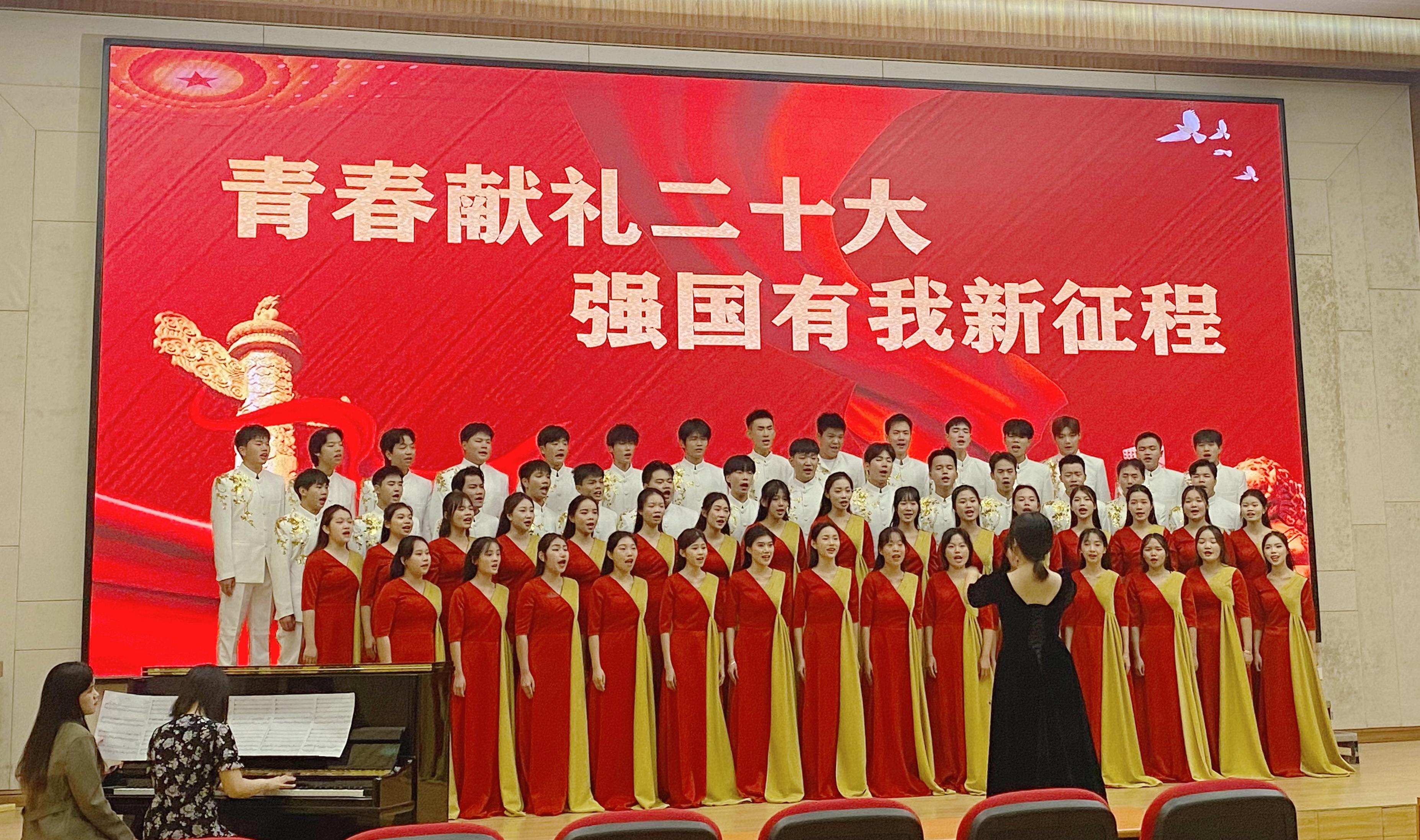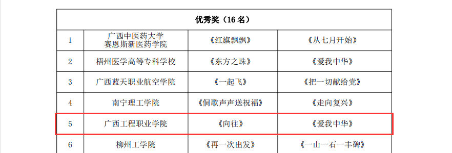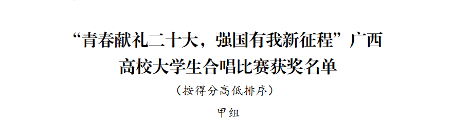 我校師生積極響應(yīng)中共廣西壯族自治區(qū)委員會(huì)教育工作委員會(huì)、廣西壯族自治區(qū)教育廳聯(lián)合發(fā)文公布了2022年“青春獻(xiàn)禮二十大,強(qiáng)國有我新征程”廣西高校大學(xué)生合唱比賽。教育學(xué)院選送的作品《向往》《愛我中華》(指導(dǎo)教師:何瑞禎、覃小密、林璠、王冬)參賽,榮獲甲組優(yōu)秀獎(jiǎng)。本屆“青春獻(xiàn)禮二十大,強(qiáng)國有我新征程”廣西高校大學(xué)生合唱比賽共有 57 所高校提交作品參賽,其中甲組(非音樂類專業(yè)) 33 所高校,乙組(音樂專業(yè))24 所高校。經(jīng)專家評審,甲組產(chǎn)生一等獎(jiǎng)2 名、二等獎(jiǎng) 4名、三等獎(jiǎng) 6名、優(yōu)秀獎(jiǎng)16名。