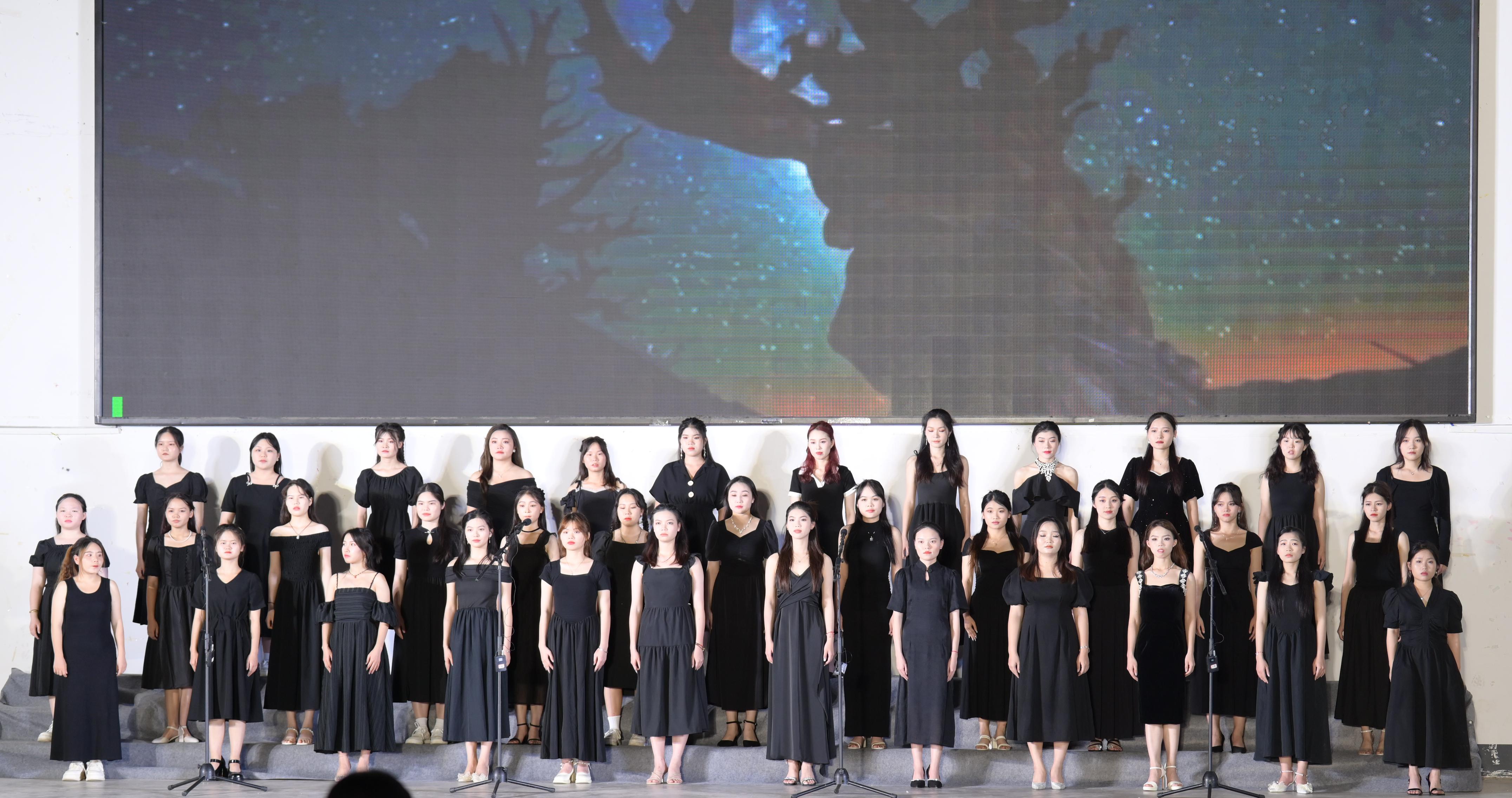此次專業(yè)匯報(bào)演出以獨(dú)唱、重唱、合唱、歌舞情景劇等形式展示,全部由2021級(jí)藝術(shù)教育專業(yè)(音樂方向)75位同學(xué)在何瑞禎、覃小密、黃雯靖、黃娜四位老師的指導(dǎo)下完成。策劃、排練、演出歷時(shí)三個(gè)多月,本場(chǎng)匯報(bào)演出旨在2021級(jí)藝術(shù)教育專業(yè)(音樂方向)的同學(xué)兩年學(xué)習(xí)成果的凝聚,演出以歡快的青春流行曲《那個(gè)遠(yuǎn)方》開場(chǎng),點(diǎn)明主題,拉開帷幕。