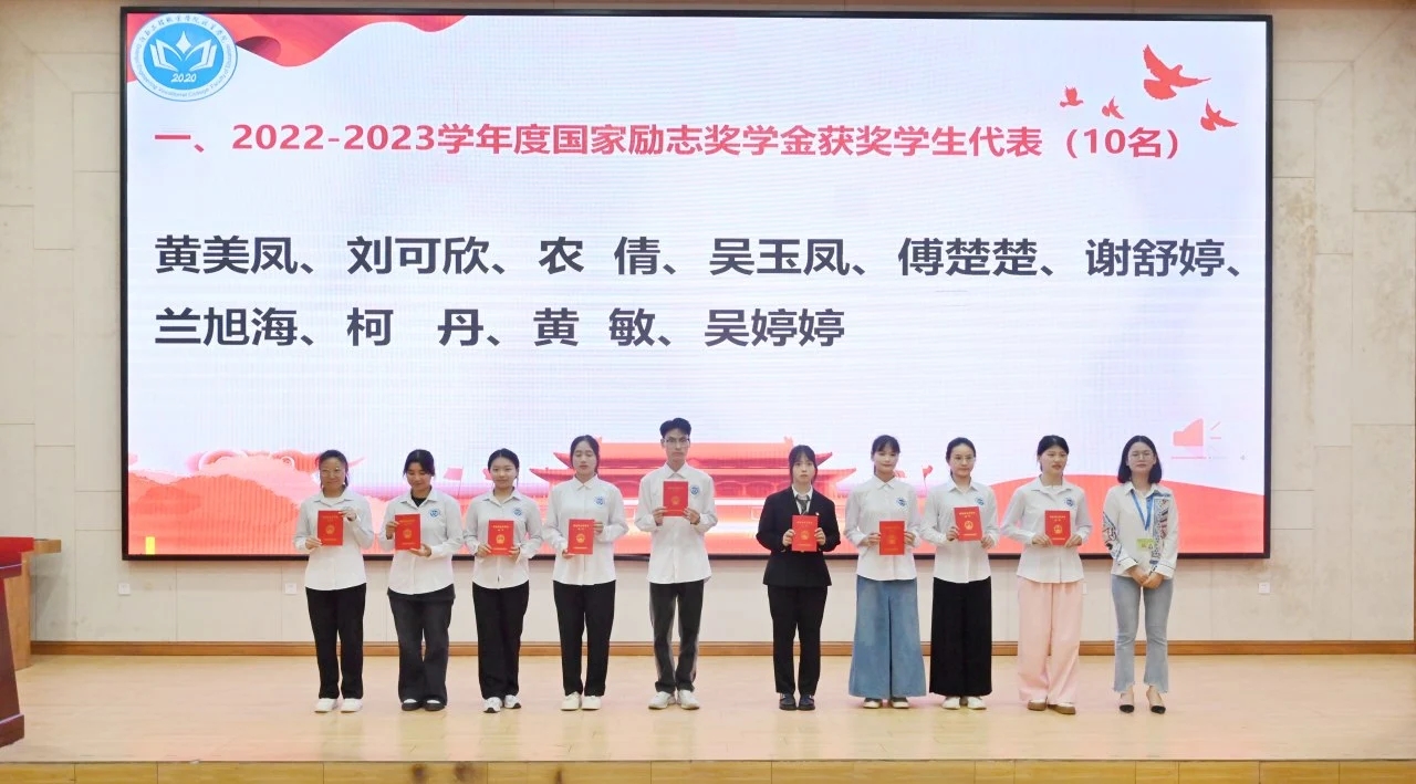 出席本次表彰大會的領(lǐng)導、老師有校長助理梁善雅,教育學院黨支部書記、院長梁鳳琴,黨支部副書記盧燕梅,辦公室主任梁義平,分團委書記、學生科科長佴蕊,教研室副主任劉世燕、馬熙出席表彰大會,教育學院全體師生代表參加大會。