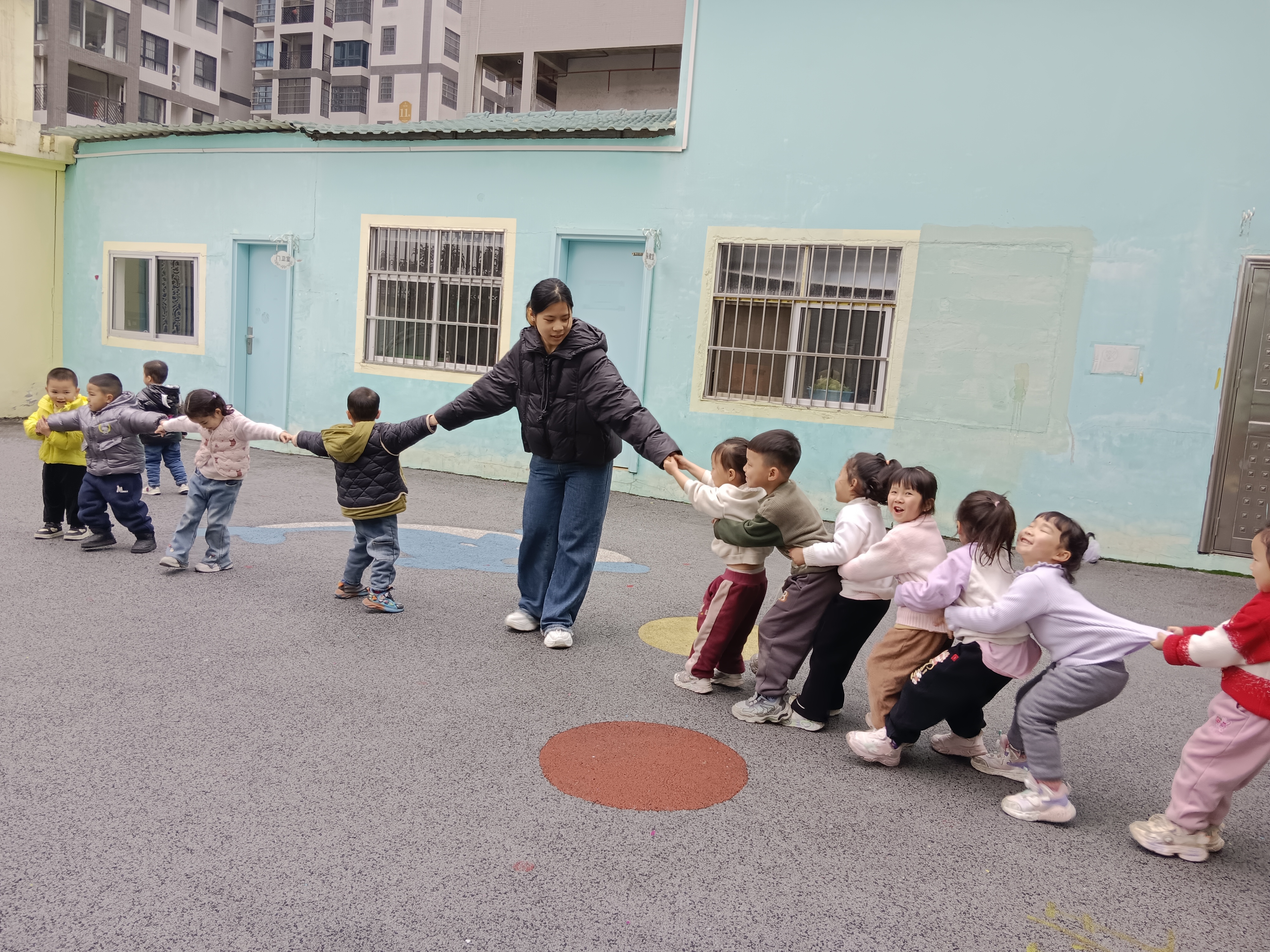 (我院學(xué)生帶領(lǐng)小朋友們玩游戲)