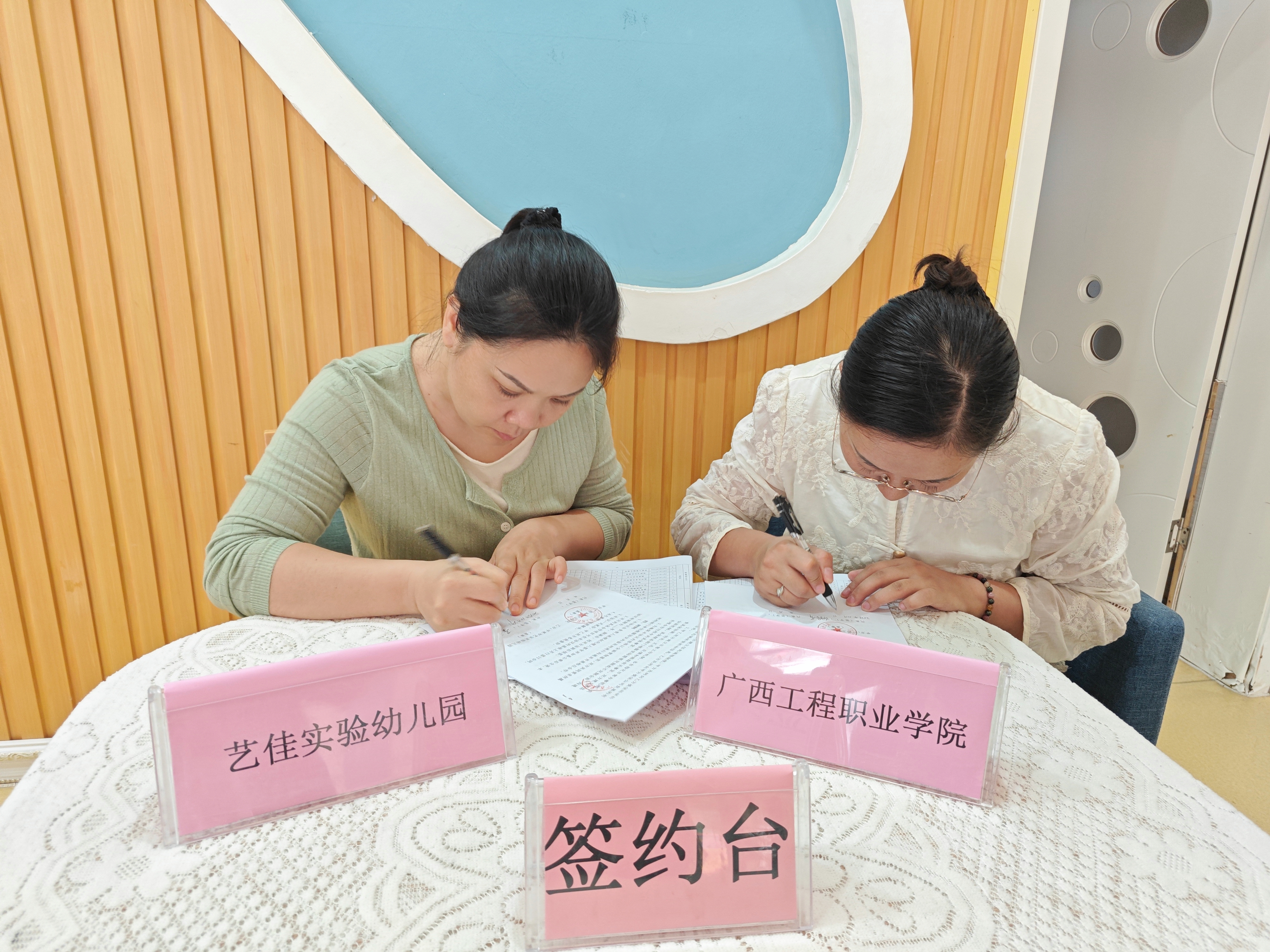 隨后,雙方代表共同簽署了校企合作協(xié)議書。根據(jù)協(xié)議,未來雙方將在人才培養(yǎng)、人才評價(jià)、實(shí)習(xí)實(shí)踐、課程研發(fā)、教師專業(yè)實(shí)踐等方面開展長期穩(wěn)定的合作。此次簽約不僅為我院學(xué)前教育專業(yè)的人才培養(yǎng)注入新動(dòng)力,也為平果藝佳實(shí)驗(yàn)幼兒園的發(fā)展提供了有力支持,對推動(dòng)區(qū)域?qū)W前教育事業(yè)高質(zhì)量發(fā)展具有重要意義。
