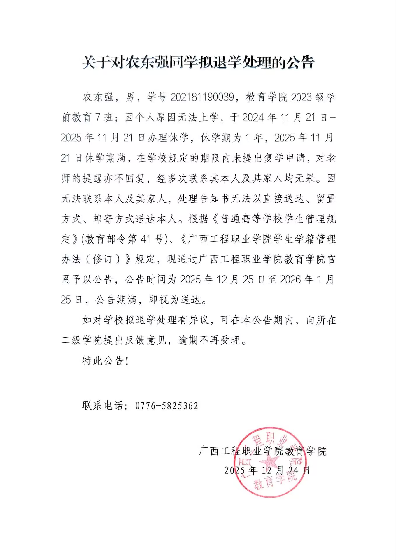 上一篇:關于對鄧鳳桓同學擬按退學處理的公告