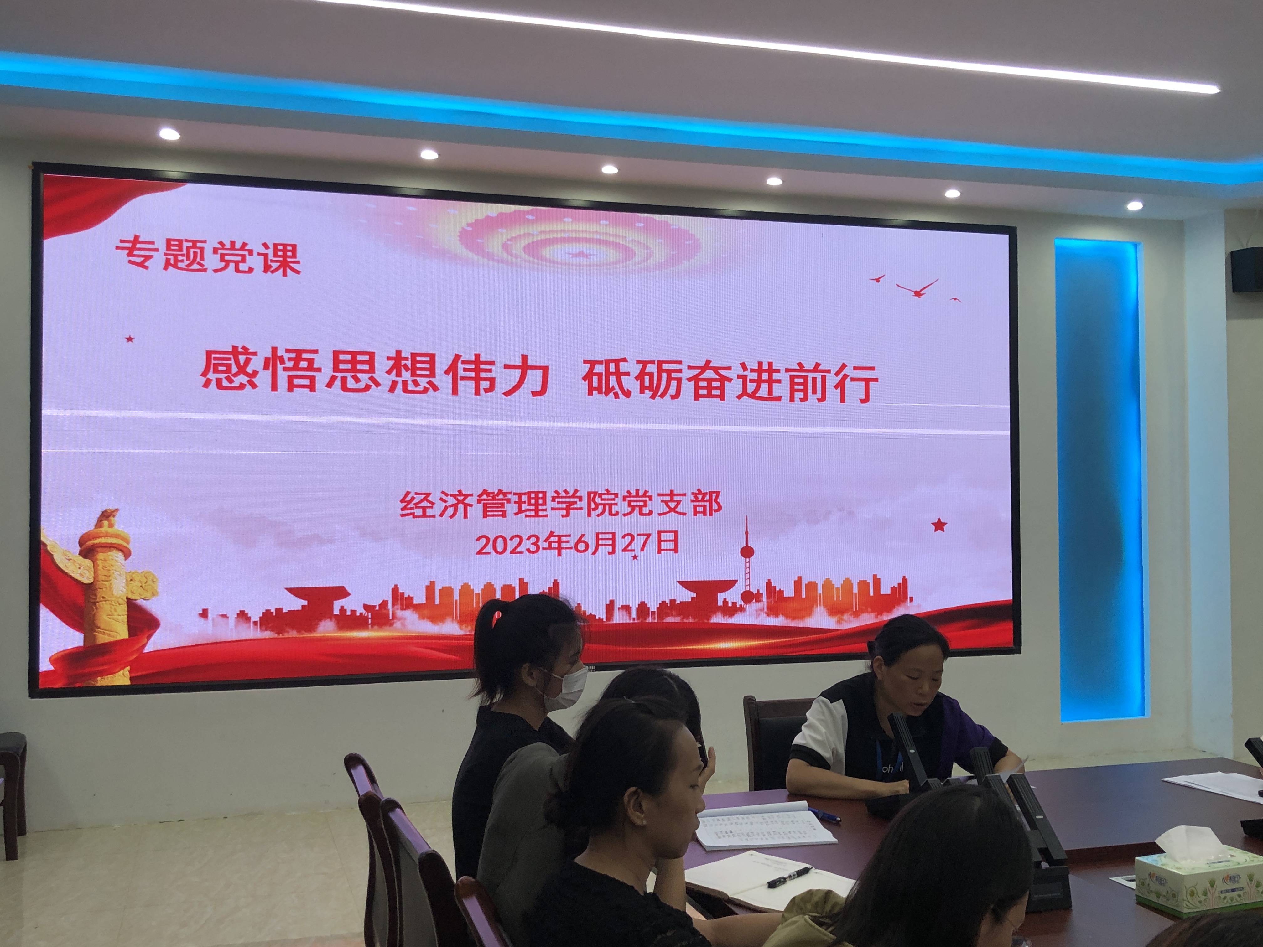 在“七一”即將來臨之際,為深入學(xué)習(xí)宣傳貫徹習(xí)近平新時代中國特色社會主義思想和黨的二十大精神,6月28日經(jīng)濟管理學(xué)院黨支部書記龐英連以“感悟思想偉力 砥礪奮進(jìn)前行”為主題,為支部全體黨員講授主題教育專題黨課。