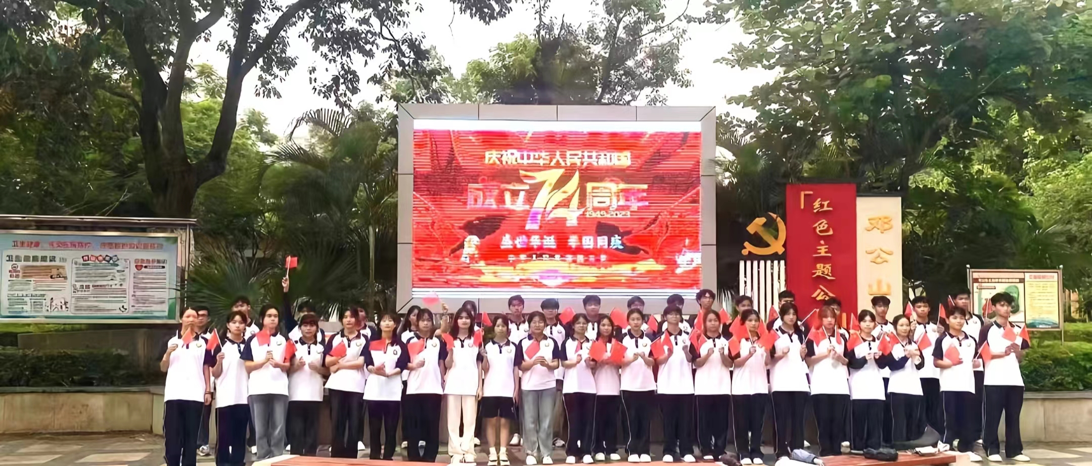 在中華人民共和國(guó)成立74周年之際,為加強(qiáng)師生的愛(ài)國(guó)主義教育,引導(dǎo)經(jīng)濟(jì)管理學(xué)院廣大學(xué)子加強(qiáng)黨史學(xué)習(xí),激發(fā)學(xué)生和教師的民族自尊心、自信心和自豪感,明白立身做人之“理”、增強(qiáng)信仰信念之“信”、厚植愛(ài)黨愛(ài)國(guó)之“德”、踐行服務(wù)國(guó)家與人民之“行”。2023年9月27日,經(jīng)濟(jì)管理學(xué)院開(kāi)展慶祝建國(guó)74周年系列活動(dòng)。