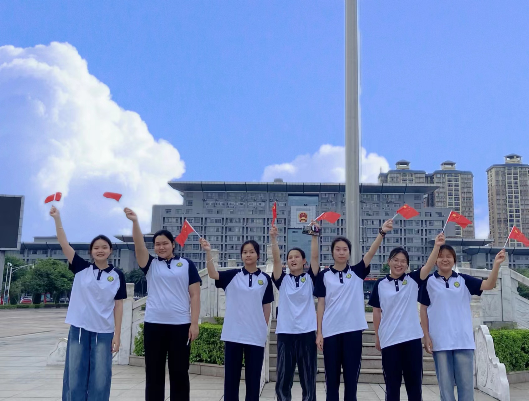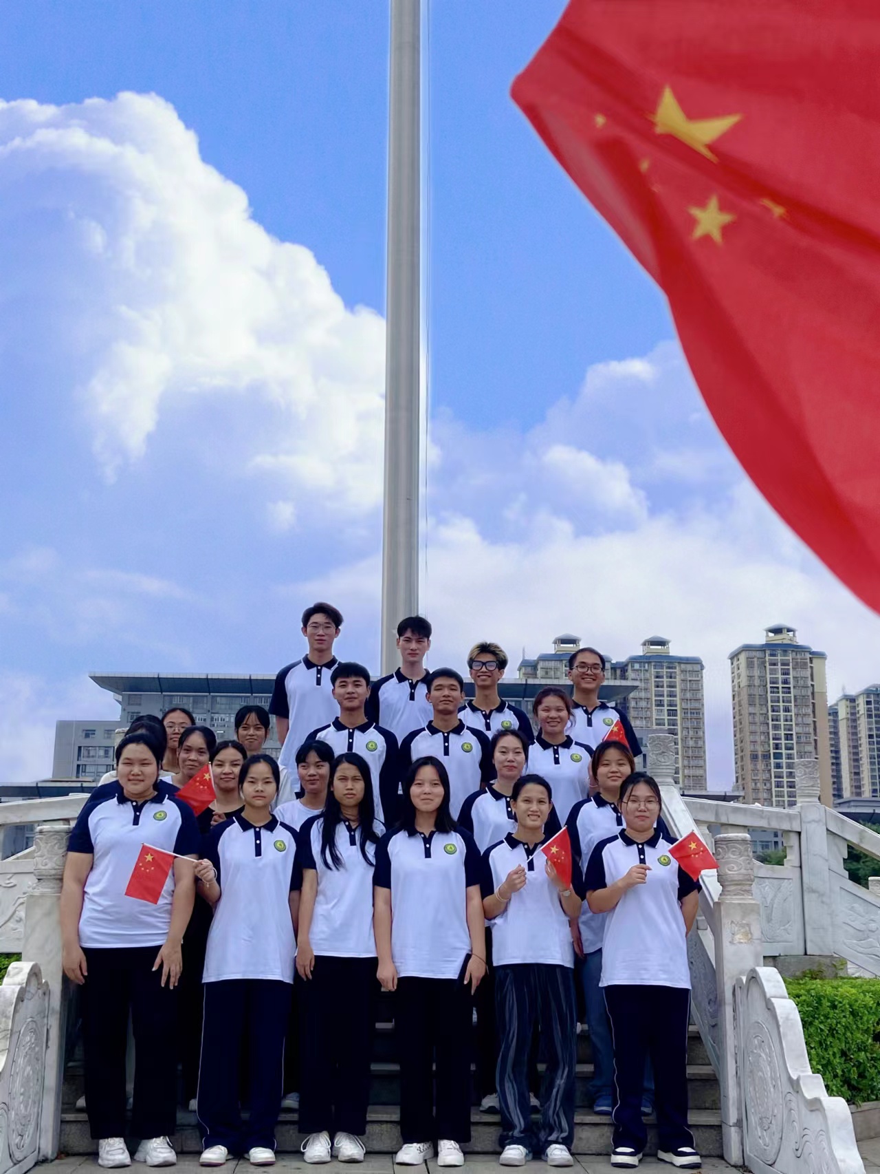 為了慶祝祖國(guó)盛世華誕,培養(yǎng)青年愛(ài)國(guó)主義情懷,系好人生第一粒扣子,經(jīng)濟(jì)管理學(xué)院開(kāi)展“我在工程與國(guó)旗有個(gè)合影”系列活動(dòng),向偉大祖送上我們最誠(chéng)摯的祝福。在本次活動(dòng)中,師生們自發(fā)選取學(xué)校內(nèi)不同地點(diǎn),選取不同的拍攝角度與國(guó)旗合影,帶著祝福表達(dá)了對(duì)祖國(guó)的真摯情感。這是學(xué)生們對(duì)祖國(guó)愛(ài)得深沉的表達(dá)、對(duì)紅色信仰堅(jiān)定不移的信任、對(duì)新時(shí)代建功立業(yè)的禮贊、對(duì)實(shí)現(xiàn)偉大復(fù)興中國(guó)夢(mèng)的憧憬。